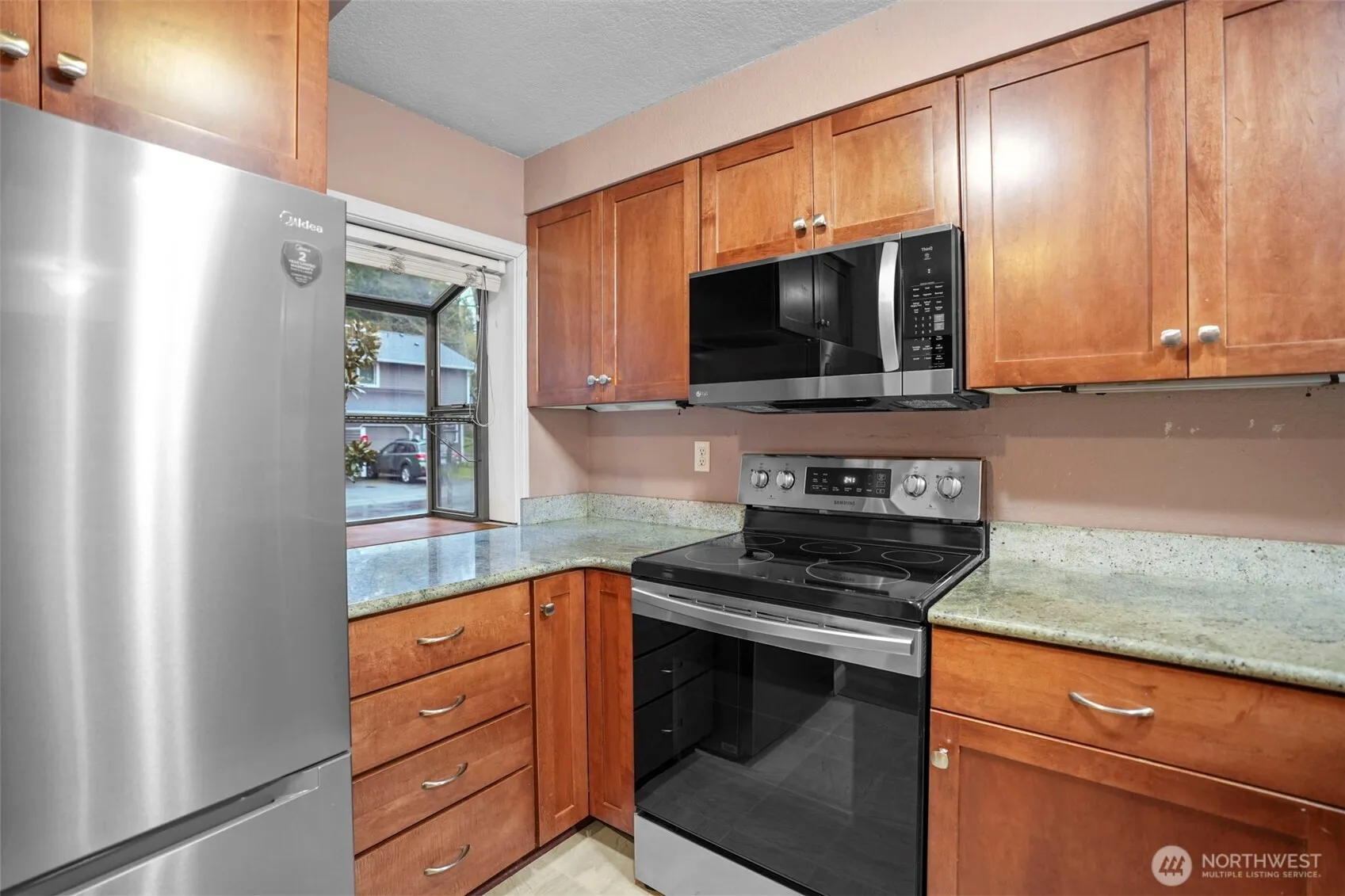 Welcome to this beautifully updated condo in the desirable North Juanita area of Kirkland—offering the perfect blend of comfort, convenience, and flexibility. With no rental cap, this is an incredible opportunity for both homeowners and investors alike. Step inside to find a thoughtfully maintained home featuring granite countertops, a modern kitchen with stainless steel appliances (just 2 years old), and a functional layout designed for everyday living. Major system updates provide peace of mind, with the hot water tank, furnace, and A/C all less than 4 years old. The primary bathroom has been tastefully updated with new tile, hardware, cabinetry, and countertops, creating a clean and refreshed space to unwind. A townhouse layout but with only one shared wall – offering added privacy! Part of a well-kept community with sidewalks throughout the complex, creating a welcoming, neighborhood feel. The layout includes a dedicated laundry area upstairs for added convenience. Enjoy indoor-outdoor living with a fully fenced backyard, ideal for relaxing or entertaining, along with additional exterior storage. You’ll also appreciate nearby visitor parking for guests. Located in a well-managed community with a low HOA, this home offers unbeatable accessibility—just minutes to I-405, nearby transit centers, and The Village at Totem Lake with close proximity to dining, shopping, and everyday amenities.