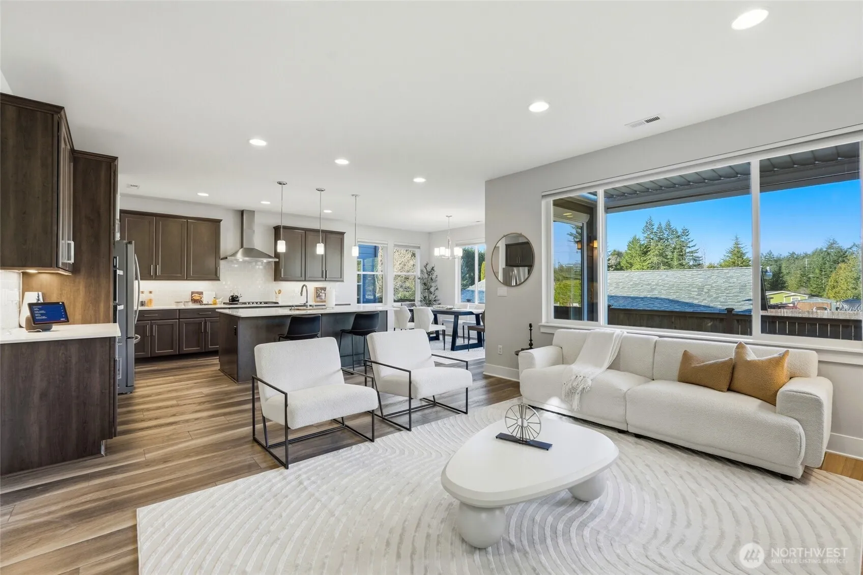 Situated in the desirable Overlook at Summit Park community in Maple Valley, this 2021-built home offers 2,560 sq ft of modern living in an exceptionally convenient location. Designed for flexibility, the main level features an open-concept great room ideal for entertaining, a well-equipped kitchen with abundant workspace and a walk-in pantry, plus a main-floor bedroom and ¾ bath that is perfect for guests, multi-generational living, or a private home office. Upstairs, the spacious primary suite includes a private bath and walk-in closet, complemented by two additional bedrooms and a full bath, plus a loft with built-in desk. Contemporary finishes throughout create a clean, modern feel, plus $35,000 in upgrades including • Govee Smart lighting • Motorized pergola shades • Tesla EV charger • Ring security camera system and • Central A/C. Step outside to a fully fenced, artificial turf backyard with covered patio designed for low maintenance and year-round enjoyment. The home also includes a 2-car garage and is ideally located near everyday amenities. Enjoy easy walking access to dining, shopping, and services at Four Corners, nearby recreation at Summit Park, and miles of outdoor adventure along the Cedar River Trail. The property is also within walking distance of Tahoma High School and located in the highly regarded Tahoma School District. This home offers the perfect balance of modern design, smart technology, and a vibrant, connected neighborhood lifestyle.