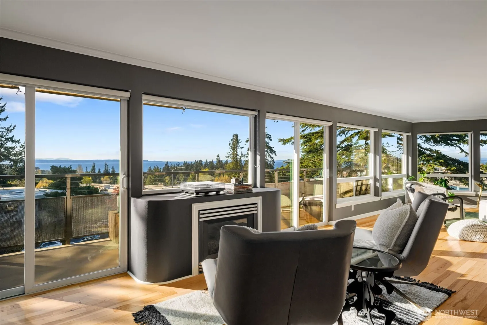Unmatched, sweeping Sound, ferry, and mountain views from this stunning one-level condo in downtown Edmonds. Floor-to-ceiling windows fill the home with natural light and showcase breathtaking sunsets and ever-changing marine activity. This bright and airy residence offers two spacious bedrooms and two beautifully remodeled bathrooms. A stunning kitchen remodel w/ quartz countertops, gas cooktop & endless storage. Enjoy fresh paint throughout, new carpet, & updated fixtures. Cozy up by the fireplace or unwind on your spacious private deck, savoring sunsets and watching ferries glide across the Sound. Beautiful, well maintained grounds and outdoor swimming pool. Major updates include new siding, decks, and windows. New plumbing throughout. Secured building with elevator. Ideally located just minutes from Edmonds’ vibrant shops, dining, theater, and the waterfront. Pacific NW living at its finest. Come enjoy!