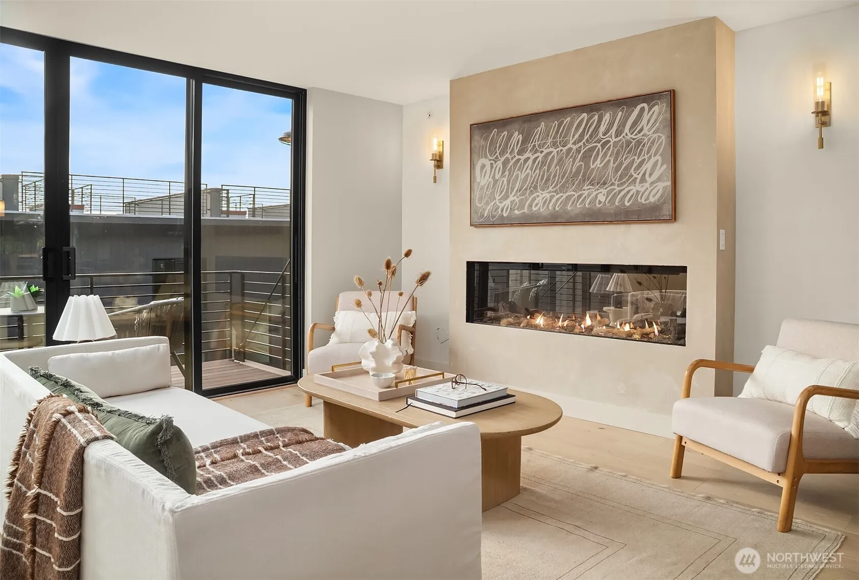 Experience the best of walkable downtown Edmonds living in this stunning new-construction home at Pine Park. Modern and stylish, this townhome blends clean architectural lines with warm, curated finishes, including wide-plank white oak floors and designer lighting throughout. The open-concept living spaces are bright and inviting, with expansive west-facing windows and seamless access to a deck that makes relaxing or entertaining easy. The kitchen is both striking and functional, appointed with a full suite of stainless-steel Dacor appliances, flat-panel cabinetry, and beautiful Daltile Monte Lucia quartzite surfaces that elevate everyday living. A versatile live-work space adds exceptional flexibility, ideal for a low-density business, studio, office, or rec room. The primary suite offers a peaceful retreat with a walk-in closet and a ¾ bath, while mini-split heating and cooling provide year-round comfort. Low-maintenance, thoughtfully designed, and set in one of Edmonds’ most walkable locations, this home offers modern convenience and lifestyle appeal in the heart of it all, plus an attractive 4.875% builder rate.
