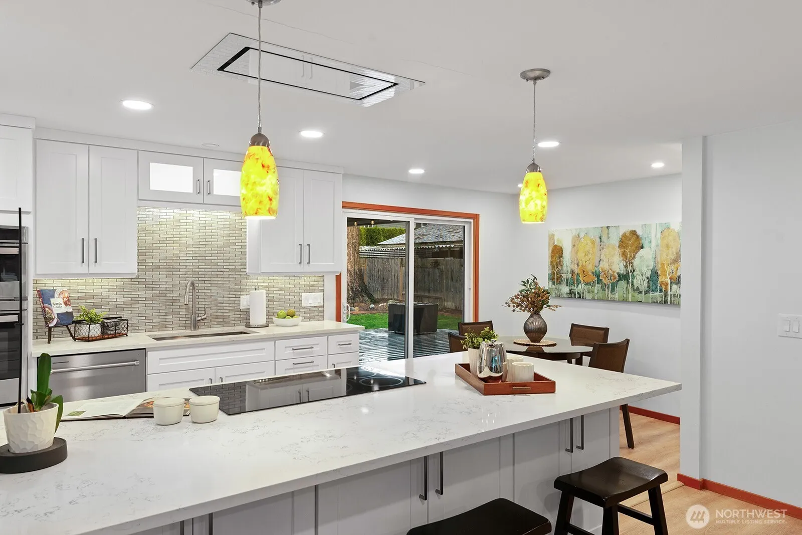 Discover easy one-level living in this beautifully updated three-bedroom rambler in the heart of the Renton Highlands. Enjoy a stunning renovated kitchen and a modern bathroom featuring a walk-in shower and double vanity. The home offers both a light-filled living room and a spacious family room—perfect for relaxing or entertaining. Situated on a generous corner lot with mature trees, the property features a fully-fenced private backyard with a new deck and an oversized two-car garage with built-in storage. Conveniently located just minutes from shopping, dining, and neighborhood schools, this location near Coal Creek Parkway makes commuting to Seattle or the Eastside a breeze. Pre-inspected and pristine, this exceptionally charming house offers comfort, style, and convenience. Financing buyers can take advantage of a 1% interest rate reduction for a full year with preferred lender. Welcome home!