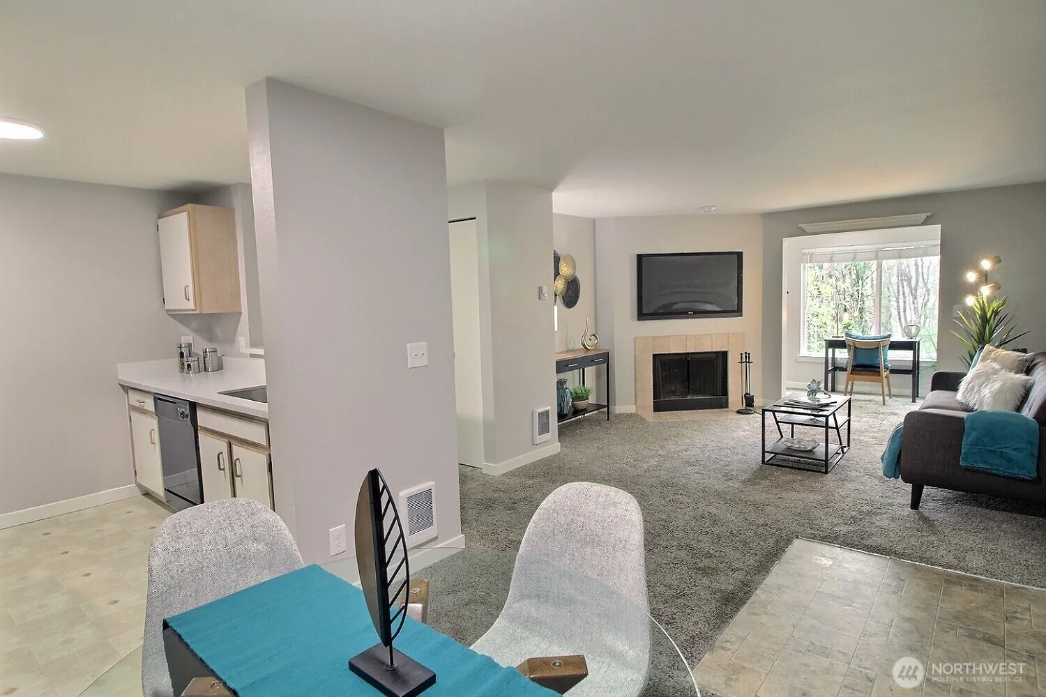 Beautifully refreshed 2-bedroom, 2-bath condo in the desirable Renton Highlands. Spacious living room with a cozy fireplace serves as the heart of the home, seamlessly connecting to the kitchen, dining area, and a versatile enclosed flex space perfect for home office or other uses. Featuring new countertops, fresh paint, and updated appliances. Enjoy a peaceful private setting with serene greenbelt views. The primary bedroom includes a 3/4 en suite bath, while the second bedroom and full bathroom provide comfortable space for guests or additional living needs. In-unit laundry adds everyday convenience. Reserved parking is just steps away (Space #175). Ample guest and street parking are available. Community amenities include clubhouse, pool, hot tub, and sports court. HOA dues cover sewer, water, and garbage for easy, low-maintenance living. Ideally located with quick access to I-405, shopping including The Landing, parks, and more.