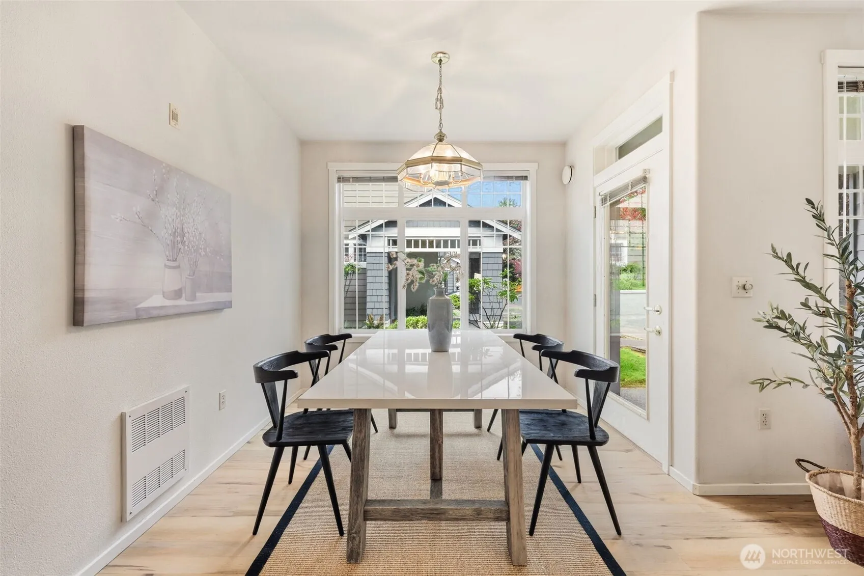 Spacious ground level corner unit with an accessible layout, in-unit laundry and attached garage. This well designed 2 bedroom 2 bathroom condo features an open kitchen, living, and dining area with updated vinyl plank flooring throughout and no stairs. Enjoy cozy evenings by the gas fireplace or relax outside on the back patio. The kitchen offers generous storage, ample counter space and a comfortable layout for everyday cooking. Large windows fill the living and dining areas with natural light, complete with blinds for added privacy. The oversized primary suite includes a walk-in closet and full en-suite bathroom, while the second bedroom and bathroom provide flexibility for guests, home office, or additional living space. Convenient entry through the attached one car garage, plus an additional driveway parking space and nearby visitor parking. HOA allows pets and monthly dues cover water, sewer, and garbage. Located at the Plum Grove Condos, tucked within a quiet residential community of Renton Highlands. Easy access to shopping, dining, local parks, commuting routes (less than 10mins to freeway) and even closer to Renton Technical College. Offering the ease of low maintenance condo living with the comfort and feel of a private home!