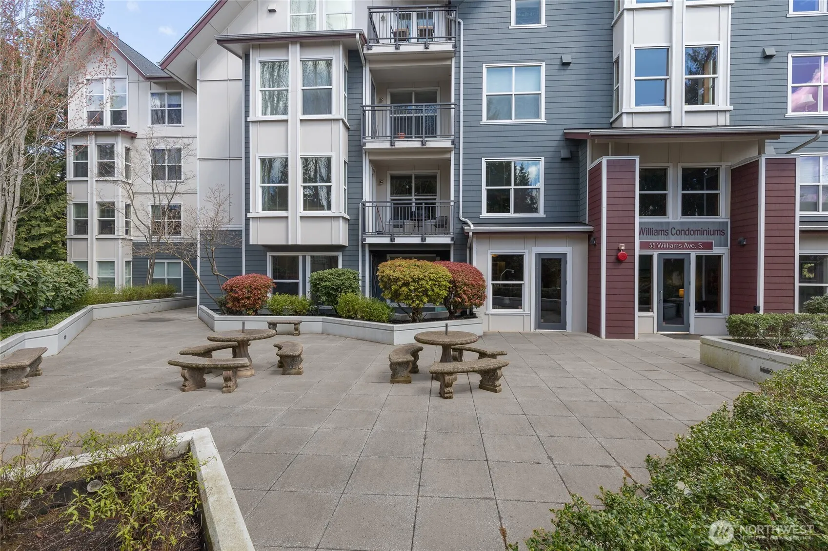 Welcome to Unit 104 at 55 Williams Ave S, a ground-floor condo tucked along the river in one of Renton’s most walkable and connected neighborhoods, priced under $400K and ready for your personal touch. Step inside to an open living and dining area anchored by a cozy fireplace, chandelier lighting, and bright windows that lead out to a generous private patio, perfect for morning coffee or unwinding after a long day with serene river views as your backdrop. The kitchen offers solid bones with white shaker cabinetry, a peninsula breakfast bar, and stainless steel appliances, with room to update and add value over time. Two spacious bedrooms include a primary suite with walk-in closet and en-suite bath, plus a second full bath, a functional layout with real upside for the buyer willing to invest a little sweat equity and make it their own. Beyond the unit, enjoy the added value of secured building access, a secured dedicated garage parking space, and private storage, conveniences that are hard to find at this price point. Just minutes from The Landing, downtown Renton, Lake Washington waterfront trails, dining, and transit, this is an exceptional entry point into homeownership. Whether you’re a first-time buyer looking to build equity or an investor with an eye for value, this is the one worth seeing. Schedule your private showing today!