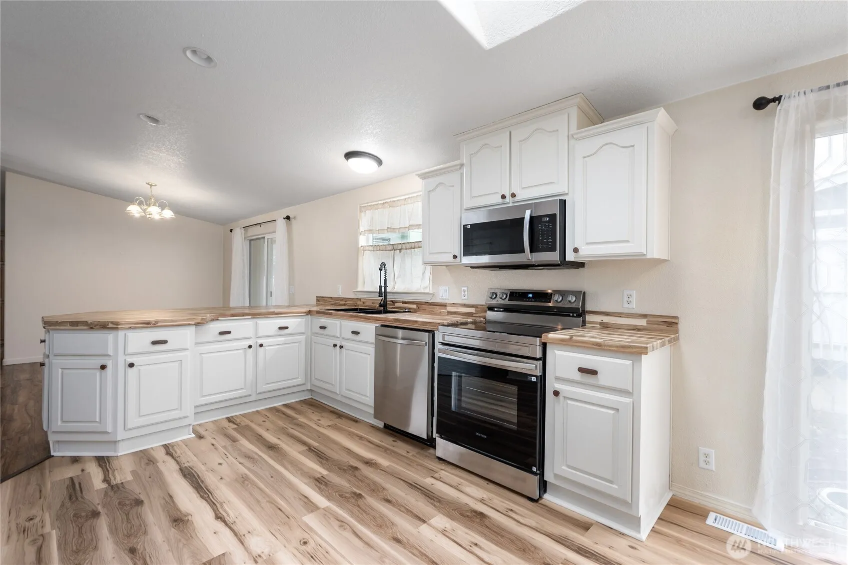 Beautifully updated 3-bedroom, 2-bath home located in the sought-after Portal Creek 55+ Community. Designed for comfortable, low-maintenance living, the open-concept floor plan features vaulted ceilings and an abundance of natural light throughout. The spacious kitchen seamlessly connects to the living and dining areas, showcasing brand-new flooring and updated countertops. Enjoy tranquil mornings in the enclosed sunroom, offering peaceful views of the thoughtfully landscaped patio. The primary suite includes a generous walk-in closet, while additional highlights include ample storage, an attached garden shed, and a 2-car garage with ramp access for added convenience. Conveniently located near I-5, public transportation, and just minutes from Bellingham, this move-in-ready home offers both comfort and accessibility—an exceptional opportunity that is move-in ready!