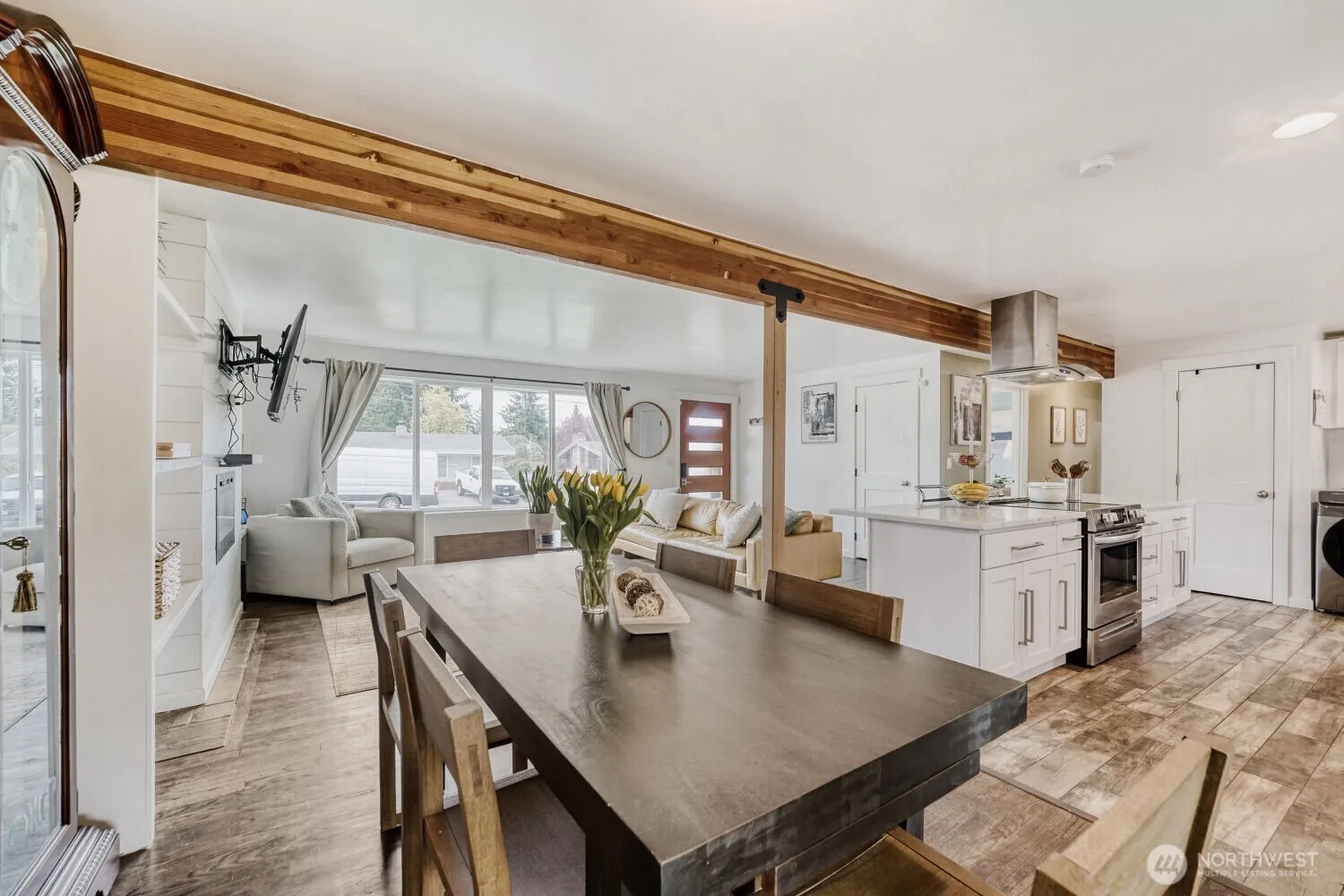 Discover effortless one-level living in this beautifully updated three-bedroom rambler, perfectly situated in the heart of the Renton Highlands. Designed with entertaining in mind, the open great room seamlessly connects to a modern kitchen featuring quartz countertops, stainless steel appliances, and a welcoming living area complete with an electric fireplace and custom built-ins. Original hardwood floors bring warmth to all three bedrooms, while updated tile and finishes throughout the home create a fresh, cohesive feel. With 3 bedrooms, 1.75 bathrooms, and an attached garage, this home blends comfort and convenience with ease. The oversized backyard is a true standout — an expansive space ideal for gatherings, play, or future projects. Enjoy the covered porch year-round and imagine the possibilities for the 200 sq ft shed, whether as a workshop, studio, or potential DADU. Located minutes from parks, schools, shops, and restaurants, including The Landing on Lake Washington,this Renton Highlands gem offers the perfect mix of space, utility, and lifestyle. Come see your next home soon.