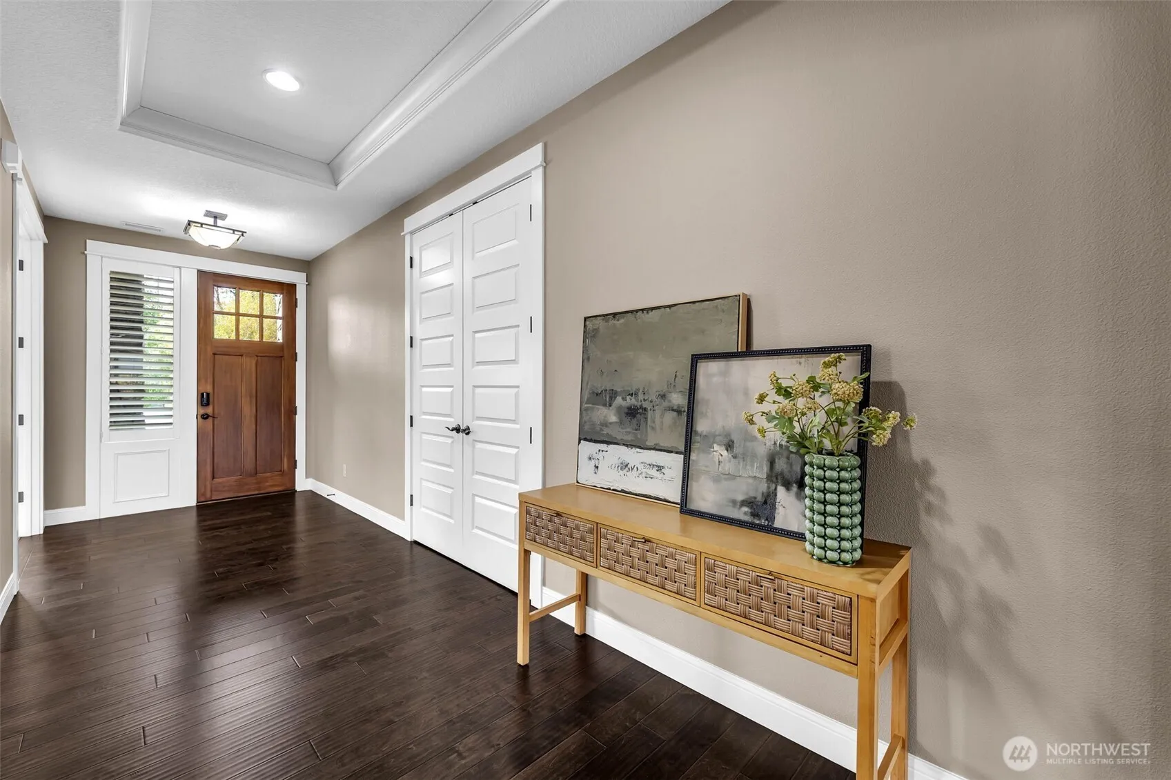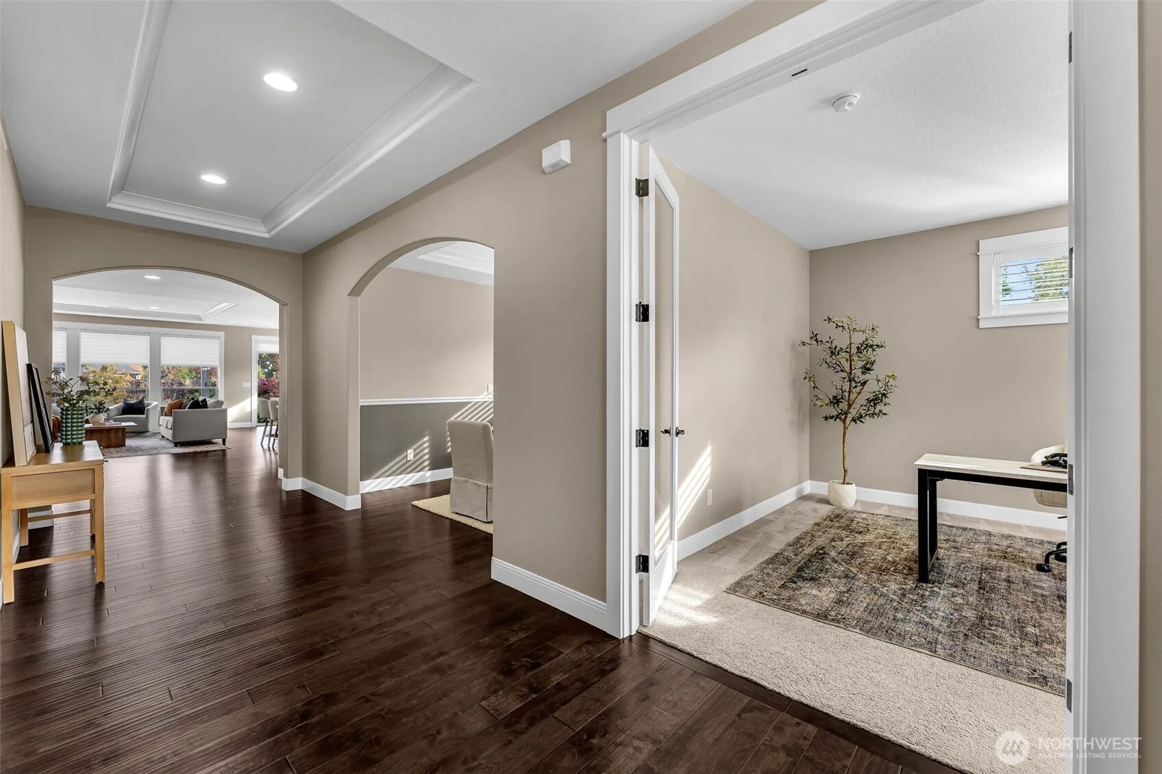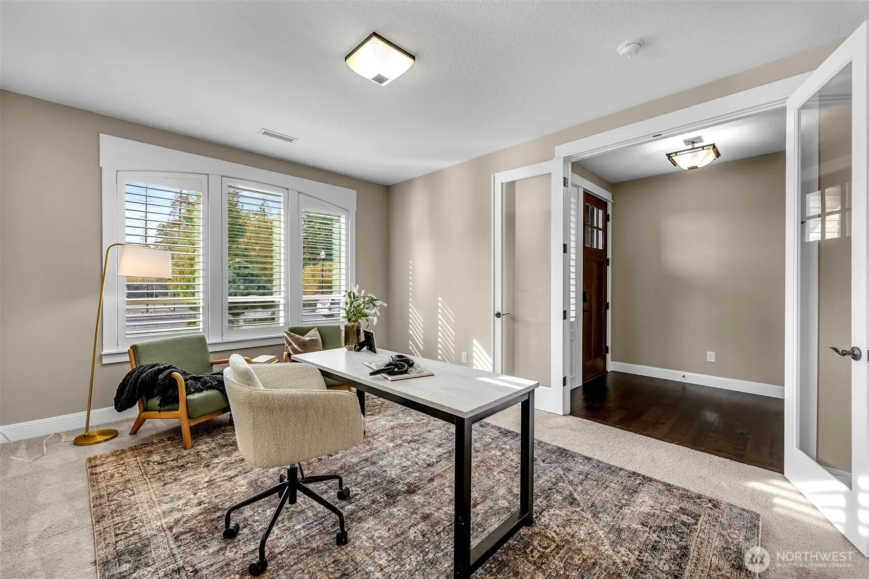 Immaculate single level home built in 2017, that truly shows like new! This meticulously maintained residence offers 4 bedrooms, an open concept layout, and high ceilings that fill the home with natural light. Thoughtful updates are showcased throughout – from the elegant entryway to the luxury kitchen and formal dining room designed for entertaining. Situated on a beautifully landscaped corner lot, the home features perfectly manicured grounds and serene views of mature trees. Every detail in this home reflects quality craftsmanship and true pride of ownership, creating a home that feels both refined and inviting. Experience modern comfort, timeless style, and the convenience of single-level living all in one exceptional property.