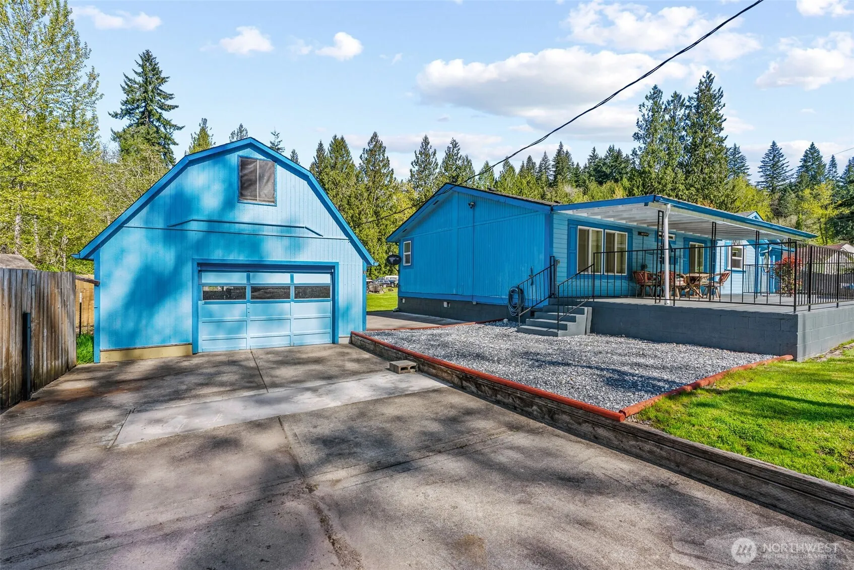Come see this 3bd 2ba 1590 sq ft home situated in desirable location just minutes from I-5. Home features vaulted ceiling, large primary en-suite w/ large walk in soak tub, spacious living space, and newer heatpump-A/C unit installed in 2023! Home is on well and septic which helps affordability. Outside you will enjoy a large covered concrete patio to hear the creek run, 2 driveways for great parking, and a detached garage with work shop area. All of this for an affordable price. Home is clean and ready for you!