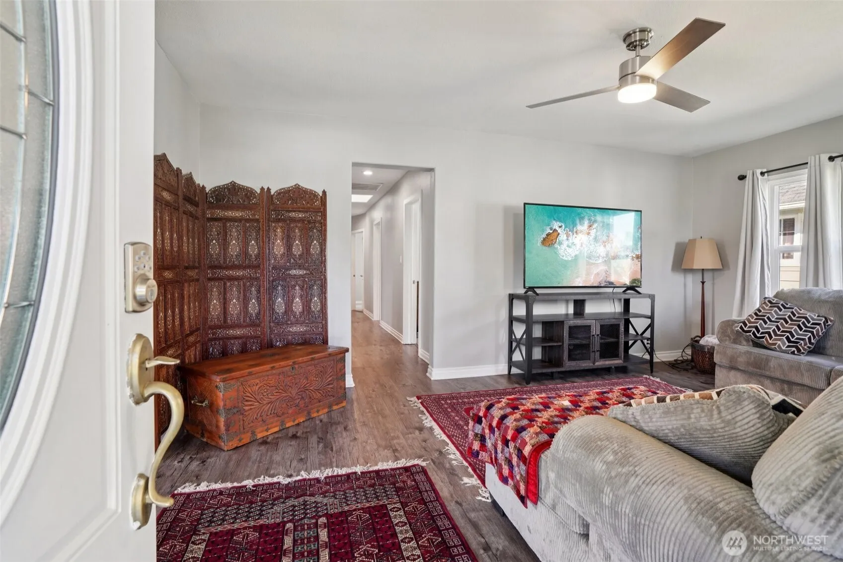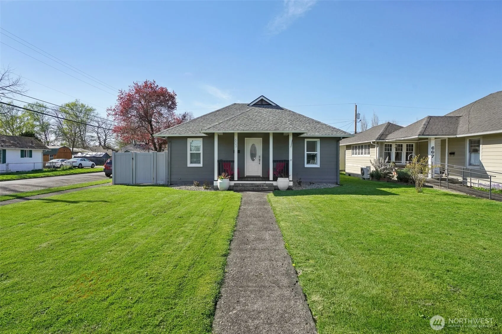 Beautifully remodeled single-story bungalow in a prime Longview location just one block from Lake Sacajawea! This charming home offers easy, comfortable living with thoughtful updates throughout. The kitchen features quartz countertops, stainless steel appliances, and excellent functionality for everyday use. Interior highlights include durable vinyl plank flooring, cozy wall-to-wall carpet, skylights, and a bright, inviting layout filled with natural light. Enjoy low-maintenance living with a manageable yard, plus a fenced side yard with a patio—perfect for relaxing or entertaining throughout the warmer months. Potted plants in the backyard can be left in place for the new owner. Detached 2-car garage with convenient alley access instead of the street, offering added privacy and ease. Ideally situated with quick access to I-5 and the Lewis & Clark Bridge, making commuting a breeze.