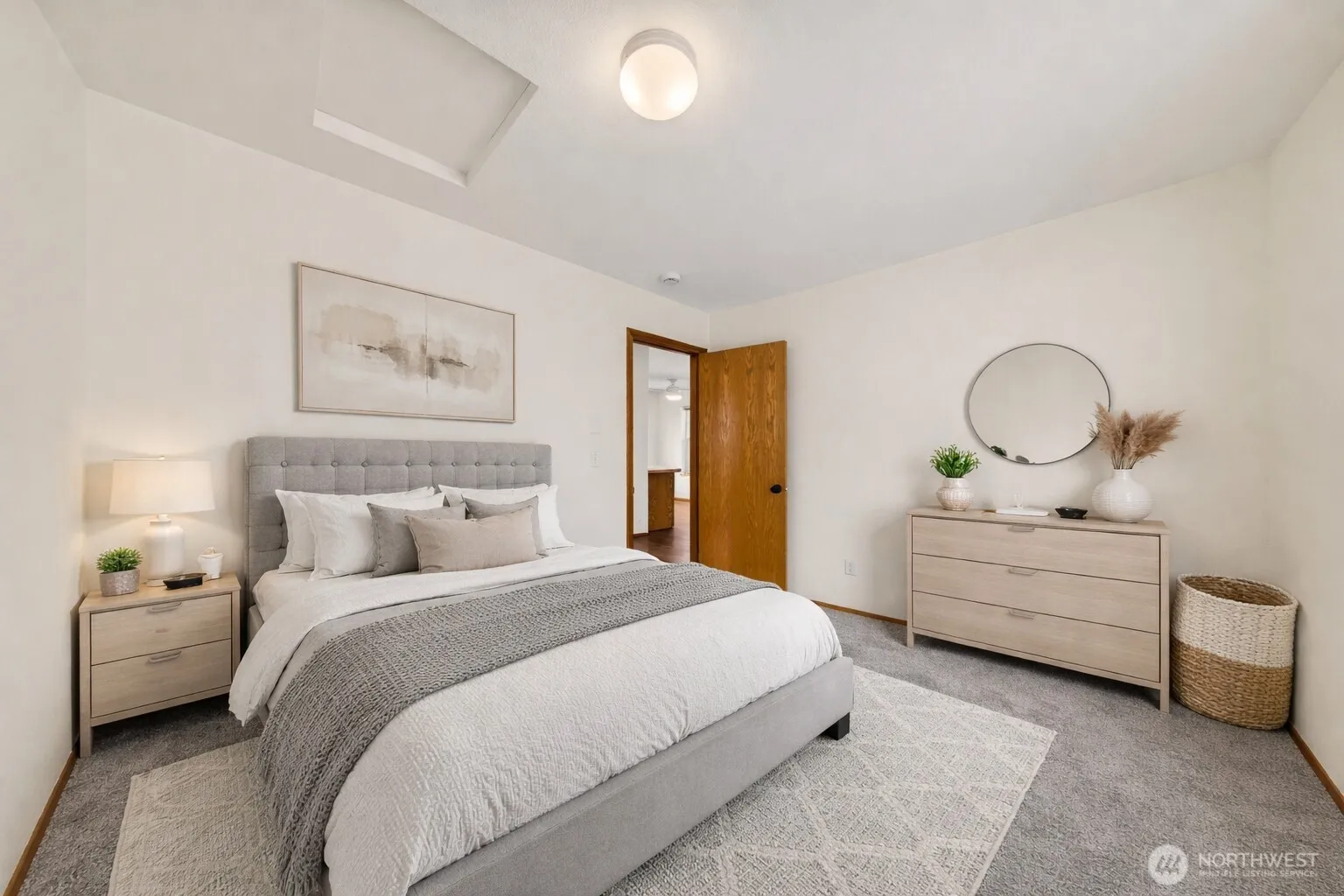 Experience a true lock-and-leave lifestyle in this charming single-story Craftsman, ideally positioned on a corner lot for added privacy within the highly sought-after 55+ Whidbey Cottages community. This move-in ready home offers thoughtfully designed living spaces filled with natural light. Unwind in the sun on your welcoming covered front porch. Home offers two spacious bedrooms. The open great room soars with natural light, while the efficient kitchen is designed for ease, featuring a charming dining nook framed by windows—perfect for enjoying your morning coffee. Seamless flow leads to the utility/laundry area, just steps from the finished one-car garage and designated guest parking space. Enjoy peace of mind with recent upgrades already paid for, including new carpet, a gas heater, new siding, and a new roof—delivering both comfort and long-term value. HOA dues include water, sewer and garbage. Community amenities include a charming clubhouse with fireplace, kitchen, and multi-purpose room, all just moments from city services, shopping, and transit. This is effortless, low-maintenance living at its finest.