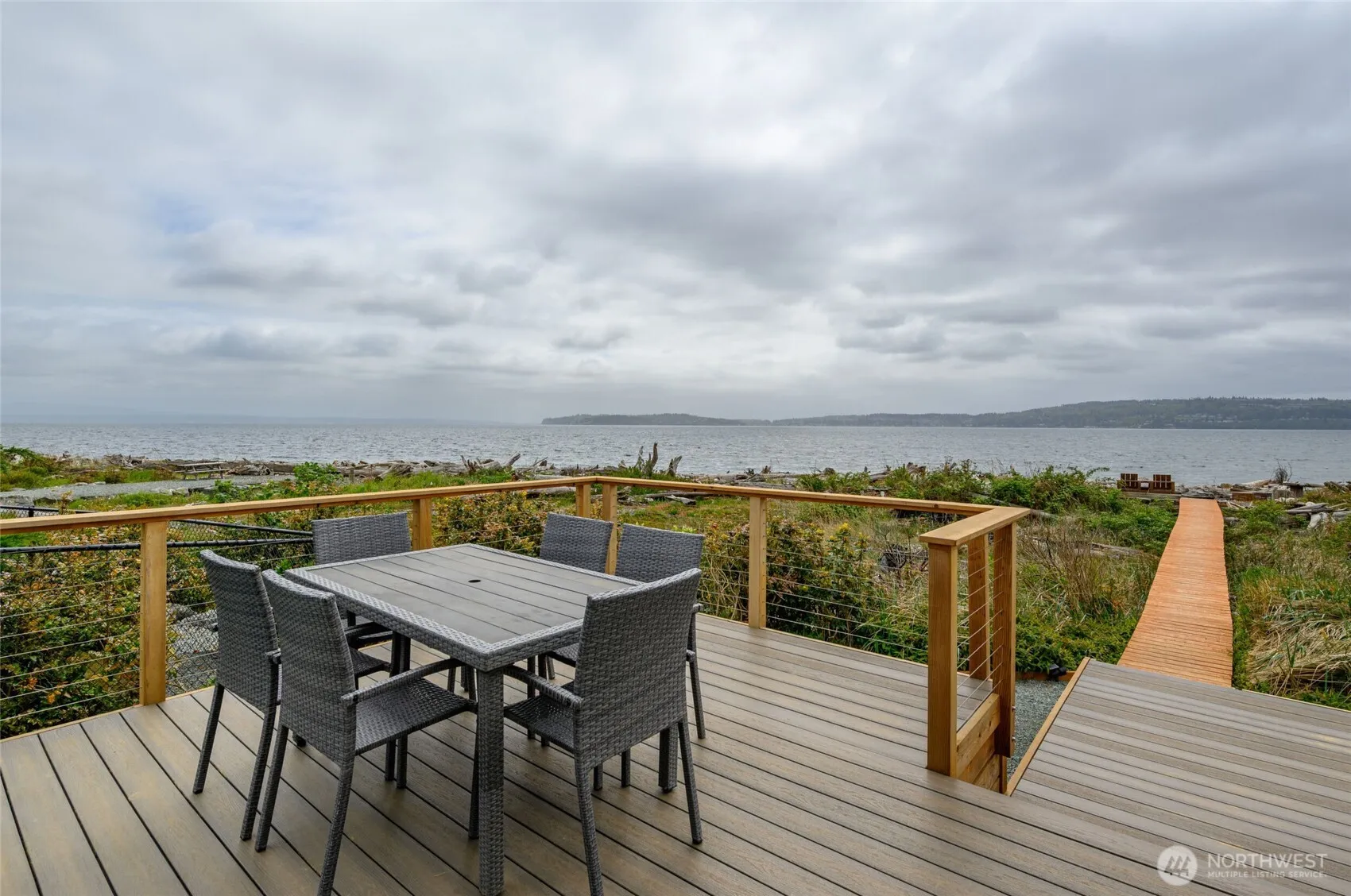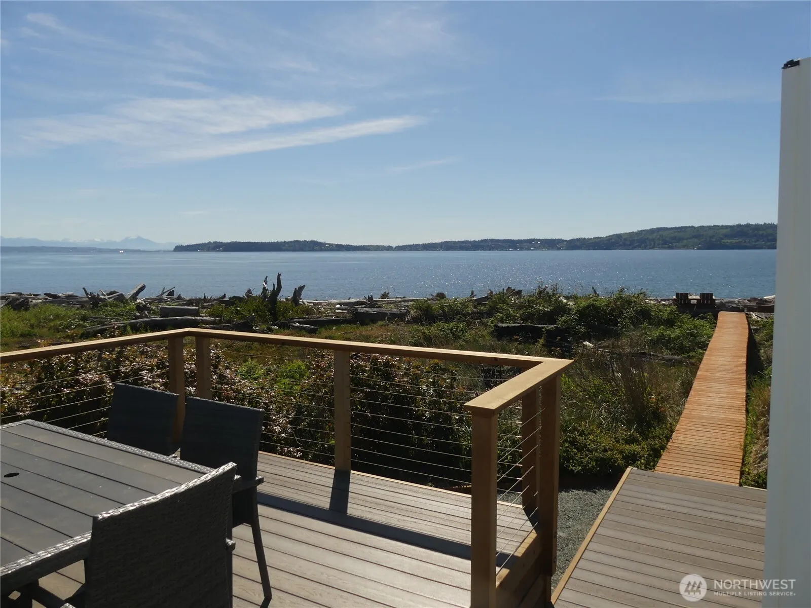 Enjoy vacation living every day of the year in this tastefully remodeled, no-bank waterfront home, located on a level 0.72-acre setting. Walk down your private boardwalk to 85 feet of beachfront paradise! Enjoy absolutely stunning views of the Cascades to the East and Olympics to the West, along with sweeping 180-degree ocean views. As you enter the light-filled home, you’re greeted by wall-to-wall windows showcasing the incredible scenery. This beautiful home (which comes fully furnished and includes electronics and exercise equipment) has been completely remodeled and is ready for you to enjoy this summer, with nothing left to do but relax in your beachfront retreat. French doors open to a large, new two-tier deck, perfect for entertaining, BBQs, or simply unwinding while taking in the peaceful surroundings and natural beauty. The updated home features two bedrooms, two and-a-half bathrooms, and a spacious basement area—ideal for guests or a retreat—that can comfortably accommodate multiple overnight visitors. Create lasting memories while beach-combing, fishing, crabbing, or digging for clams right in your own backyard. The property also includes an RV hookup and boat parking, with a boat launch just down the street. This no-HOA home would make an ideal vacation rental.