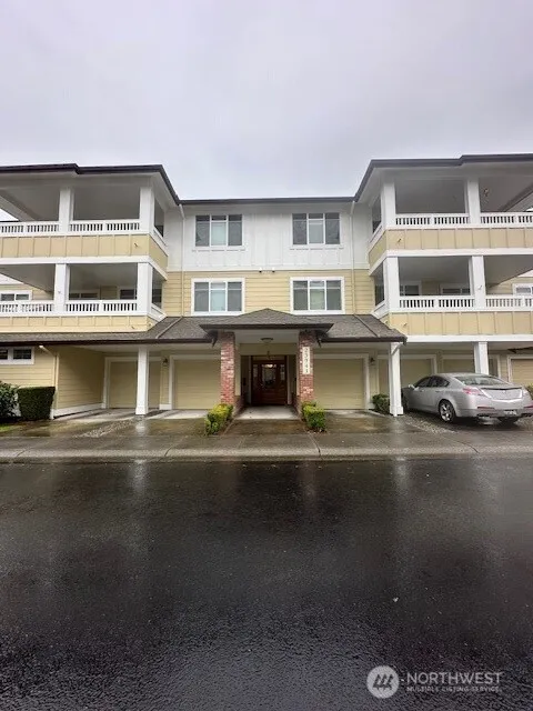 Welcome to your new home! This beautifully maintained condo offers three spacious bedrooms! The home is updated with elegant crown molding, custom window coverings, modern base boards and stunning Brazilian Cherry engineered hardwood floors in the kitchen, entry, hallway. Step inside the front door to a welcoming entry that opens into a bright and airy living space with 9’ foot ceilings. The living room area features expansive windows and a sliding glass door that leads to a private patio stretching the length of the main living area, ideal for relaxing or entertaining. Adjacent to the living area is a formal dining area with plenty of space to accommodate a large table and chairs, making it perfect for gatherings. Just off the entry to the right, you’ll find the kitchen, complete with updated granite countertops, appliances and a convenient sit-up bar seating area. To the left of the entry is the generously sized primary bedroom, large enough for a king-size bed set, and featuring an ensuite bathroom and walk-in closet. Down the hallway, you’ll find the other two bedrooms (one being used as an office with built-ins) and a full-size bathroom. A dedicated laundry closet with washer and dryer adds everyday convenience. Additional highlights include a one-car garage with extra storage and secure building access via the elevator to your floor. Located in a well-maintained 55+ community with CCR’s, gardening bed available w/reservation, walking paths and greenery abound!