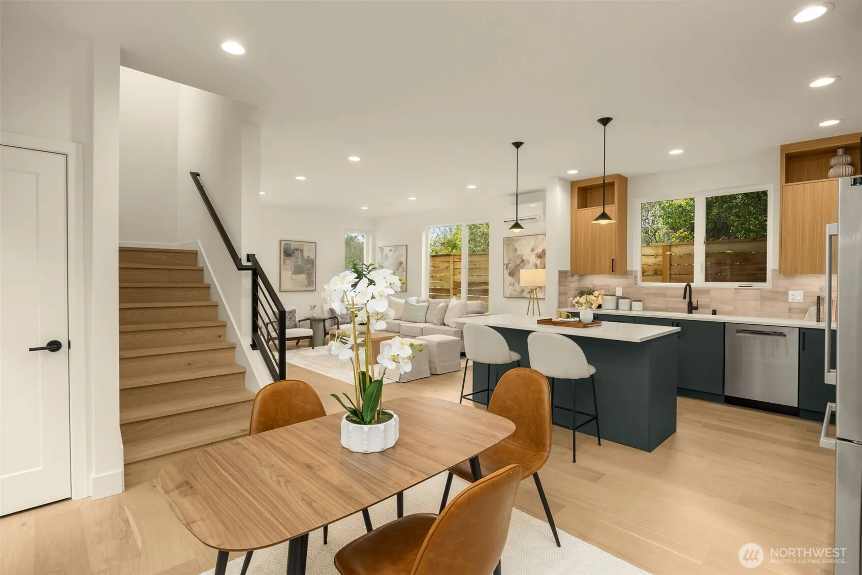 Not your typical townhome! Pine Ridge by Blackwood Homes brings five brand-new residences to the heart of Laurelhurst, with thoughtful layouts with EV-ready parking. This fully standalone home offers a functional, wide floorplan and hand-picked designer finishes to live more like a traditional home than your typical townhome. Enter into an inviting foyer with storage leading directly into the open concept living space where you will find a chef’s kitchen w/ large quartz-topped island, Bosch appliances, 36″ induction range, separate dining space, and patio for plants and your BBQ off the main floor. Come home to dedicated parking directly out the convenient side door, mini splits in all rooms for year-round comfort, and relax in a spacious primary suite with vaulted ceilings, walk-in closet and 5-piece bath w/ heated floors! A second bedroom with its own bath sits adjacent to the primary, while two more bedrooms and a den find themselves on the next floor, all to themselves but also close enough to not be too far away from your primary suite. A sprawling roof-top deck soaks up the sun and offers an inviting space to unwind or entertain. All of this, with a playground and park across the street + proximity to some of the most top-rated schools in the city, Burke-Gilman trail, UW, Children’s Hospital, and all that University Village offers & more! Lender-paid buydown available, terms apply.