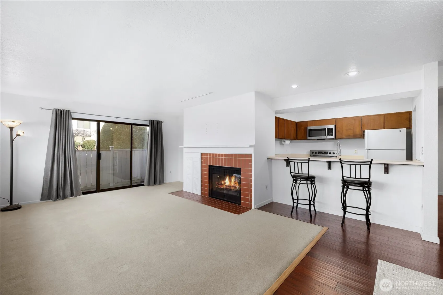 Enjoy relaxed coastal living in this inviting 2-bedroom, 1.75-bath condo in Des Moines, just moments from the waterfront and popular local dining. Conveniently located near the scenic Des Moines Marina, you’ll love easy access to marina views, waterfront strolls, and nearby restaurants. This rare single-level home offers the comfort and convenience of no stairs and no shared walls, providing a quiet and private living experience. The bright layout features comfortable living and dining spaces filled with natural light, creating a warm and welcoming atmosphere. The primary suite includes a private full bath, while the second bedroom offers comfortable space for guests. A second ¾ bathroom adds convenience for everyday living. Additional highlights include two secure parking spaces—one covered—and a private storage shed, providing extra room for seasonal items, outdoor gear, or additional storage needs. Two sliding glass doors open up to your wrap around, fenced patio. Perfect for those seeking low-maintenance living close to the water, this condo offers a wonderful opportunity to enjoy the Des Moines marina lifestyle with parks, shops, and dining just minutes away. Very low HOA only $123 per month. No rental cap! Pets and small dogs allowed.