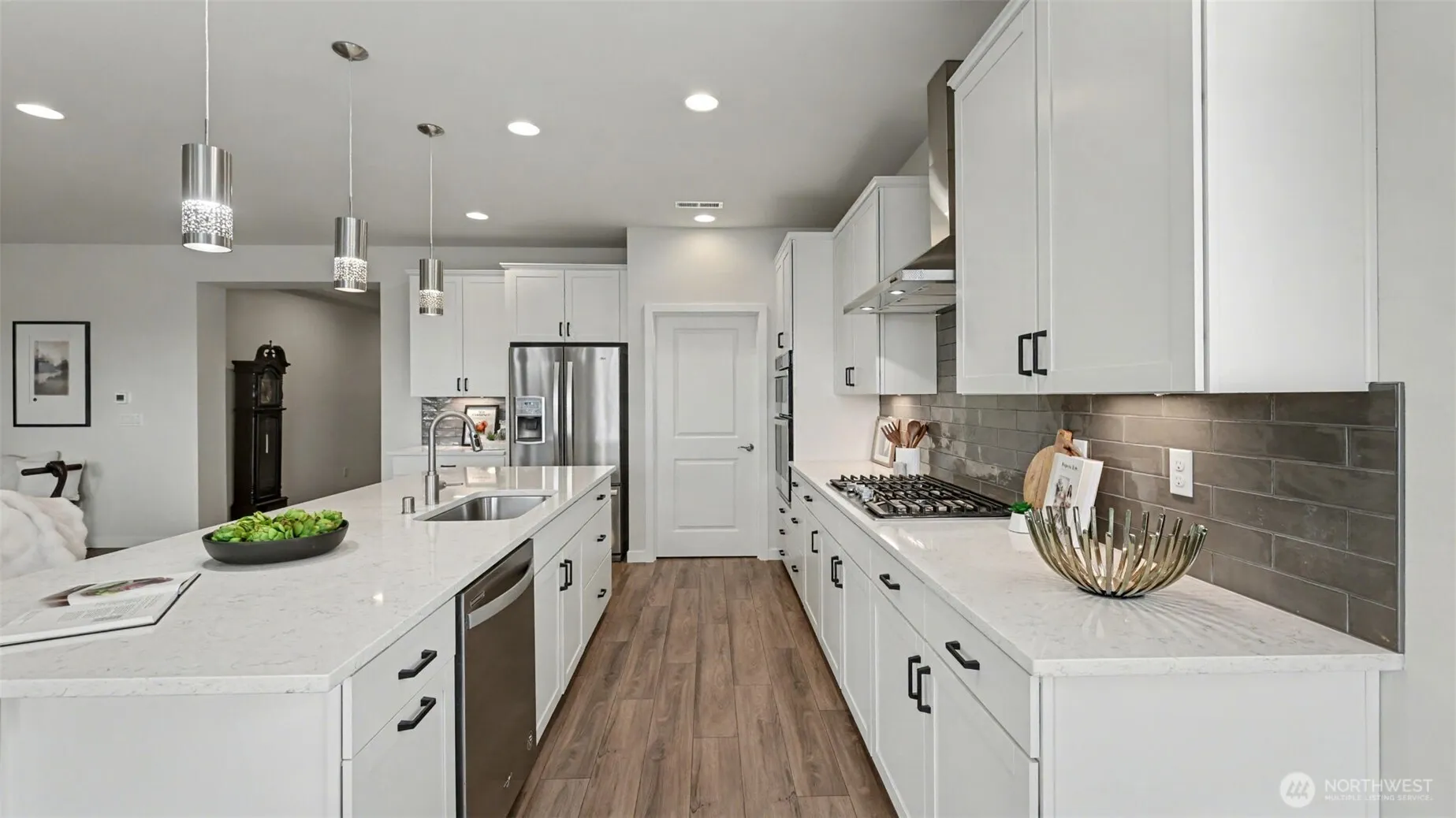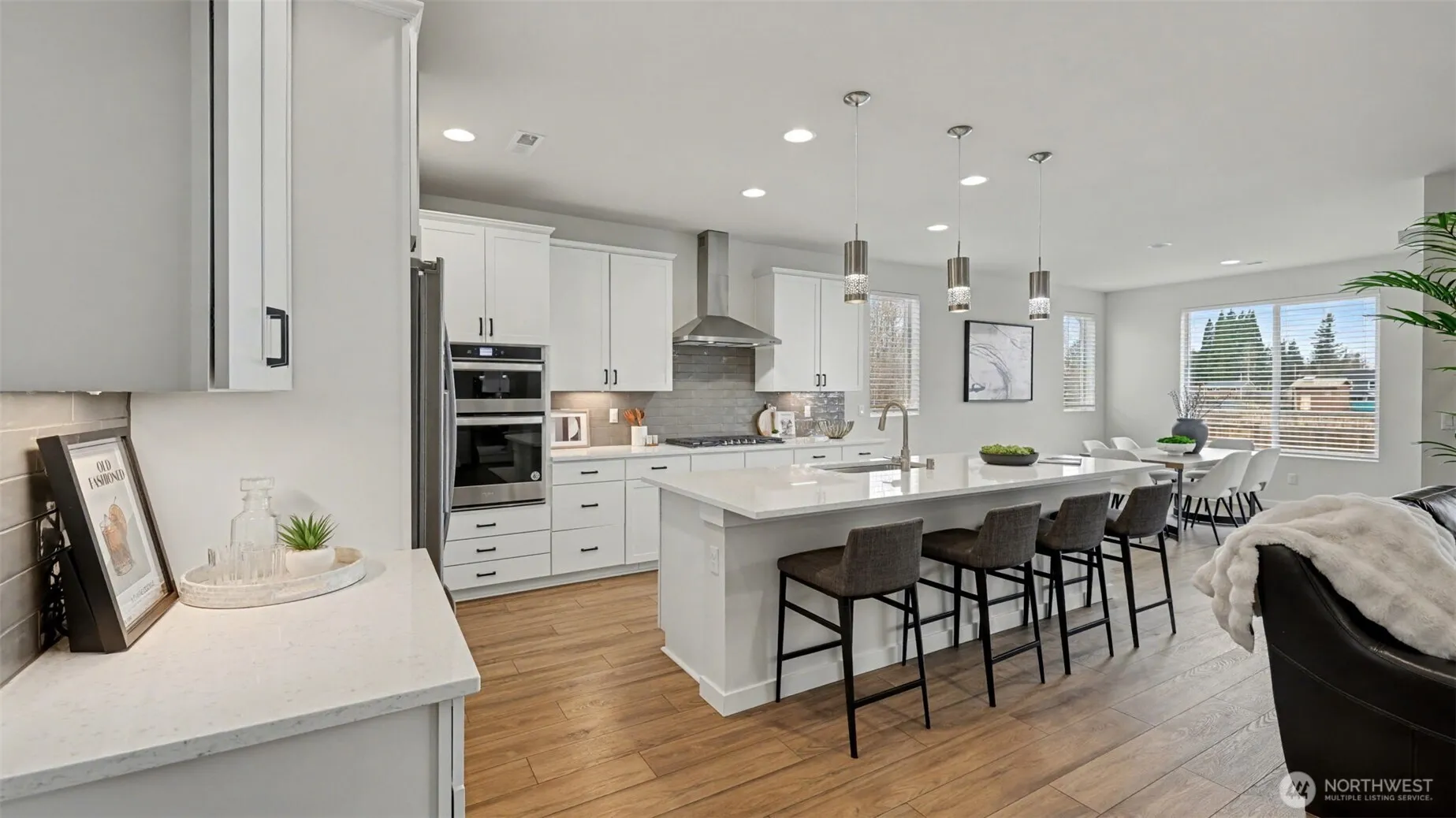 IMPECCABLY maintained 2,300 sq ft rambler in the highly sought-after Pinnacle Peak neighborhood! This light-filled home offers 3 generously sized bedrooms plus a dedicated office and spacious laundry room—designed for comfort and everyday ease. The chef’s kitchen features a large quartz island with bar seating for four, stainless steel appliances, a walk-in pantry, and seamless flow into the bright great room with cozy fireplace and an entertainment-sized dining area—perfect for gatherings both large and small. Enjoy peace of mind with meticulously maintained HVAC (heat & A/C) serviced annually. Step outside to a $40K+ professionally designed backyard retreat. The expanded covered patio and slate patio create effortless indoor-outdoor living, while the thoughtfully curated, low-maintenance perennial garden and raised beds for vegetables offer beauty and function. With added privacy and serene views of the pond and natural area behind the home, you’ll love listening to frogs and red-winged blackbirds from your own backyard oasis. Pre-inspected and truly move-in ready!