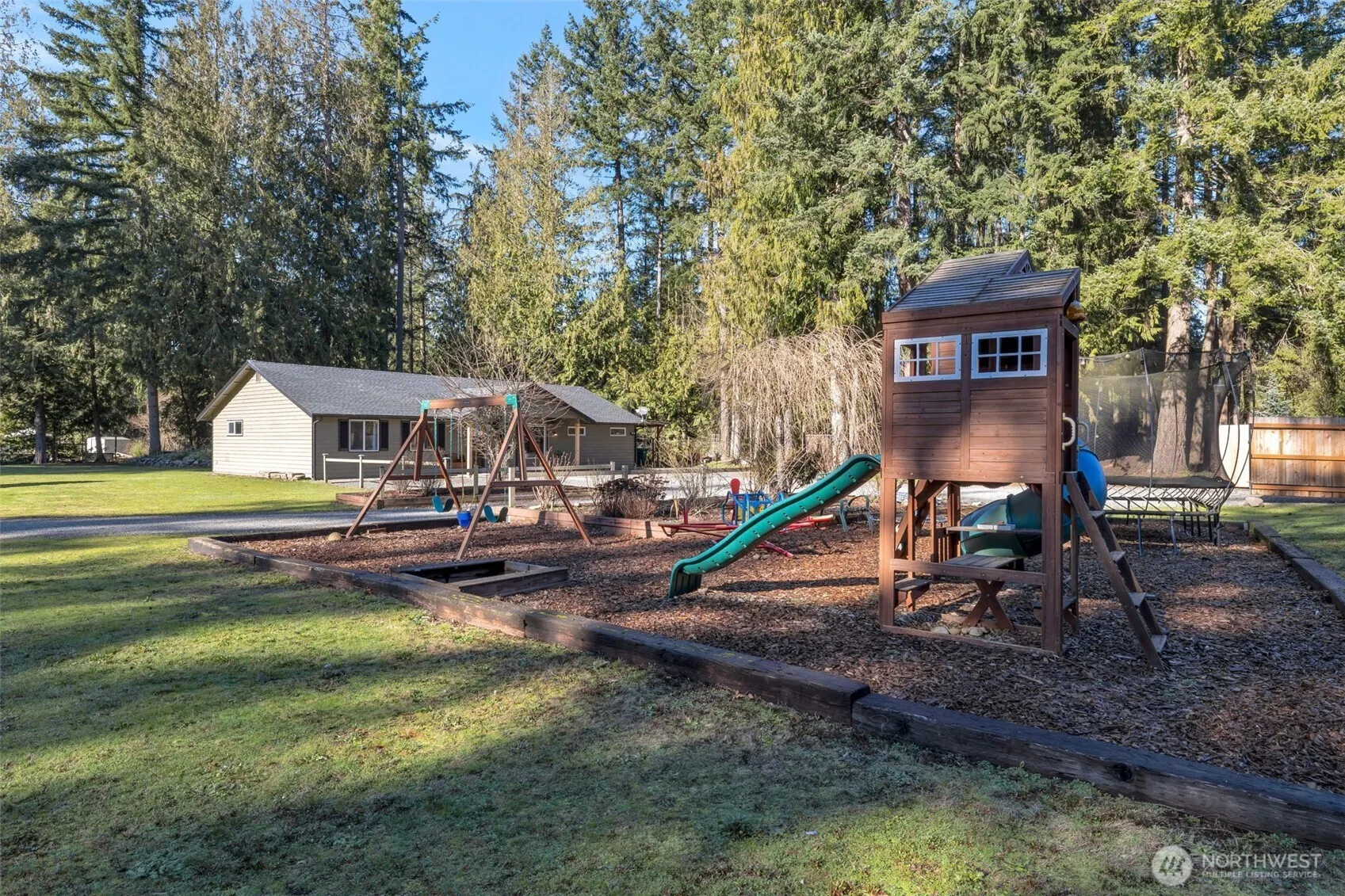 Tucked away on a quiet, private road, this 3-bedroom, 2.25 bath rambler sits on a scenic 1.58-acres offering effortless single-level living. Vaulted ceilings, skylights and multiple living areas create a bright, flexible floor plan great for entertaining. The kitchen features solid surface countertops and stainless-steel appliances. The cozy wood burning stove adds warmth and charm. The master suite includes a private en-suite bath. This large level property blends wooded privacy with large open spaces, fully fenced and complete with a dog run, chicken coops, expansive garden, greenhouse, fruit trees and berry patches. The covered patio is ideal for year-round BBQing and entertaining. Additional features include a storage shed, woodshed, firepit and a 36′ x 36′ shop with lean-to, perfect for hobbies, storage or equipment. Just a short walk to scenic hiking trails around nearby lakes and the Green River, this serene property offers the perfect combination of country living and modern convenience. Space, privacy, and versatility make this home ideal for gardeners, animal lovers, outdoor enthusiasts or anyone seeking dedicated space for hobbies.