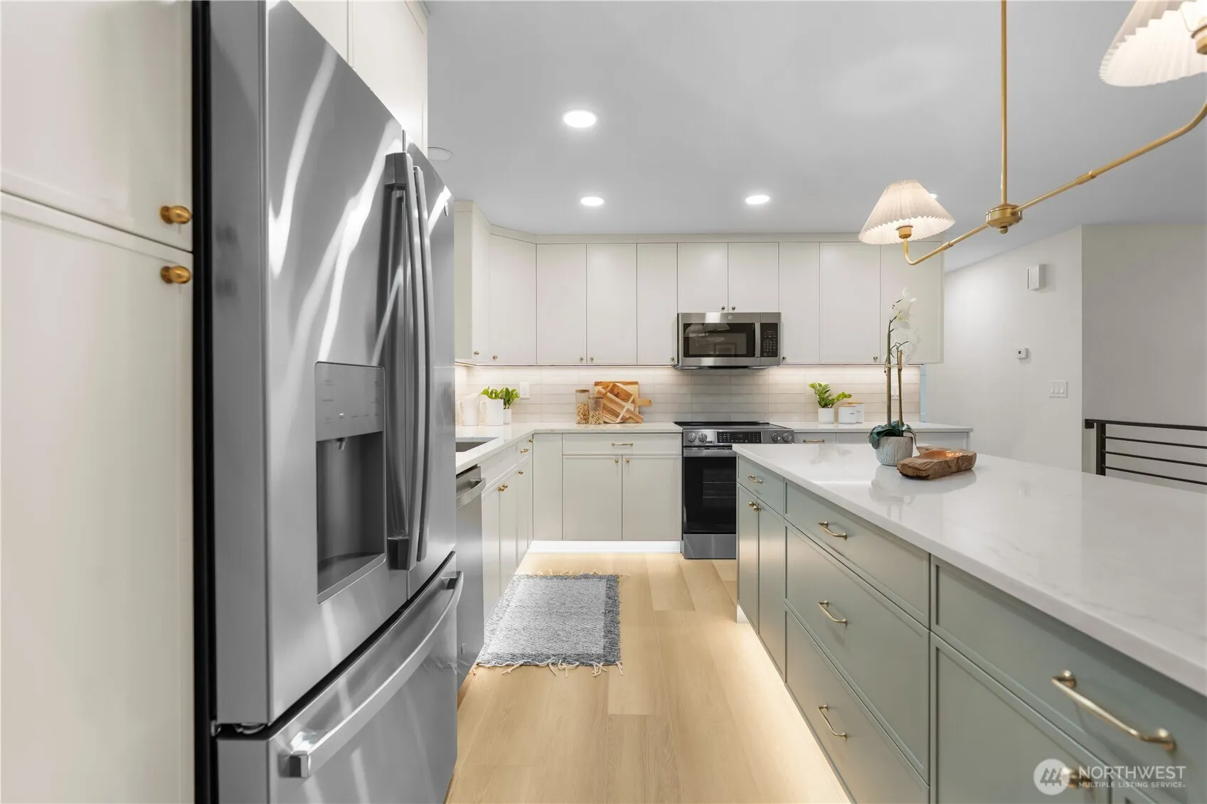 Stunning fully remodeled residence offering refined, move-in ready living on a spacious lot in Lacey. Thoughtfully reimagined with a bright, open concept design, this home showcases wide plank LVP flooring, fresh designer paint, and abundant natural light throughout. The chef-inspired kitchen features quartz slab countertops, new cabinetry with under cabinet lighting, and brand new stainless steel appliances. Recent upgrades including a new roof and furnace provide lasting quality and peace of mind. Bathrooms have been elegantly updated with modern finishes, creating a cohesive, high-end feel throughout. Step outside to a fully fenced yard with fresh hydroseed and a deck ideal for relaxing or entertaining, with ample space for outdoor enjoyment and future possibilities. Conveniently located with easy access to I-5, JBLM, and a wide range of shopping, dining, and recreational amenities, and served by the well-regarded North Thurston School District, this home offers a rare combination of style, comfort, and everyday convenience.