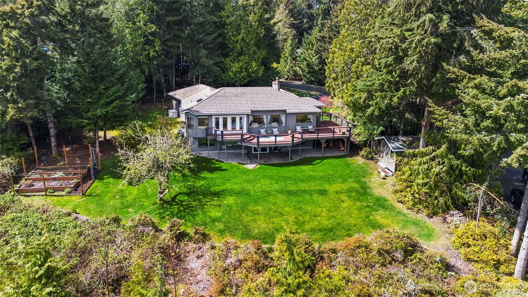 Seabeck and the Hood Canal – where every day feels like a weekend getaway! This is the quiet, private lifestyle, geared toward the water, mountains, gardens, and serenity from the city you’ve craved in a thoughtful, creative, forever home! Spend your day with an easy stroll to Scenic Beach or launch the boat at Misery Point (less than a mile) to soak in the sparkling waters, then come home to a peaceful evening on the expansive deck with gorgeous views of the Canal and a sky filled with stars. Featuring a sought after Main Floor Primary suite, vaulted ceilings, hardwood floors, and a walk out level with flex space, 2 additional bedrooms (that can open to a grand suite), plus an office/storage/2nd laundry, the home’s versatile layout and mint condition meets all your needs. Perfect for working from home with multiple spaces for an office. The raised bed gardens, the flowers and trees, and a 2nd lot for a future shop or studio complete this special package just 15 minutes to the commerce of Silverdale.
