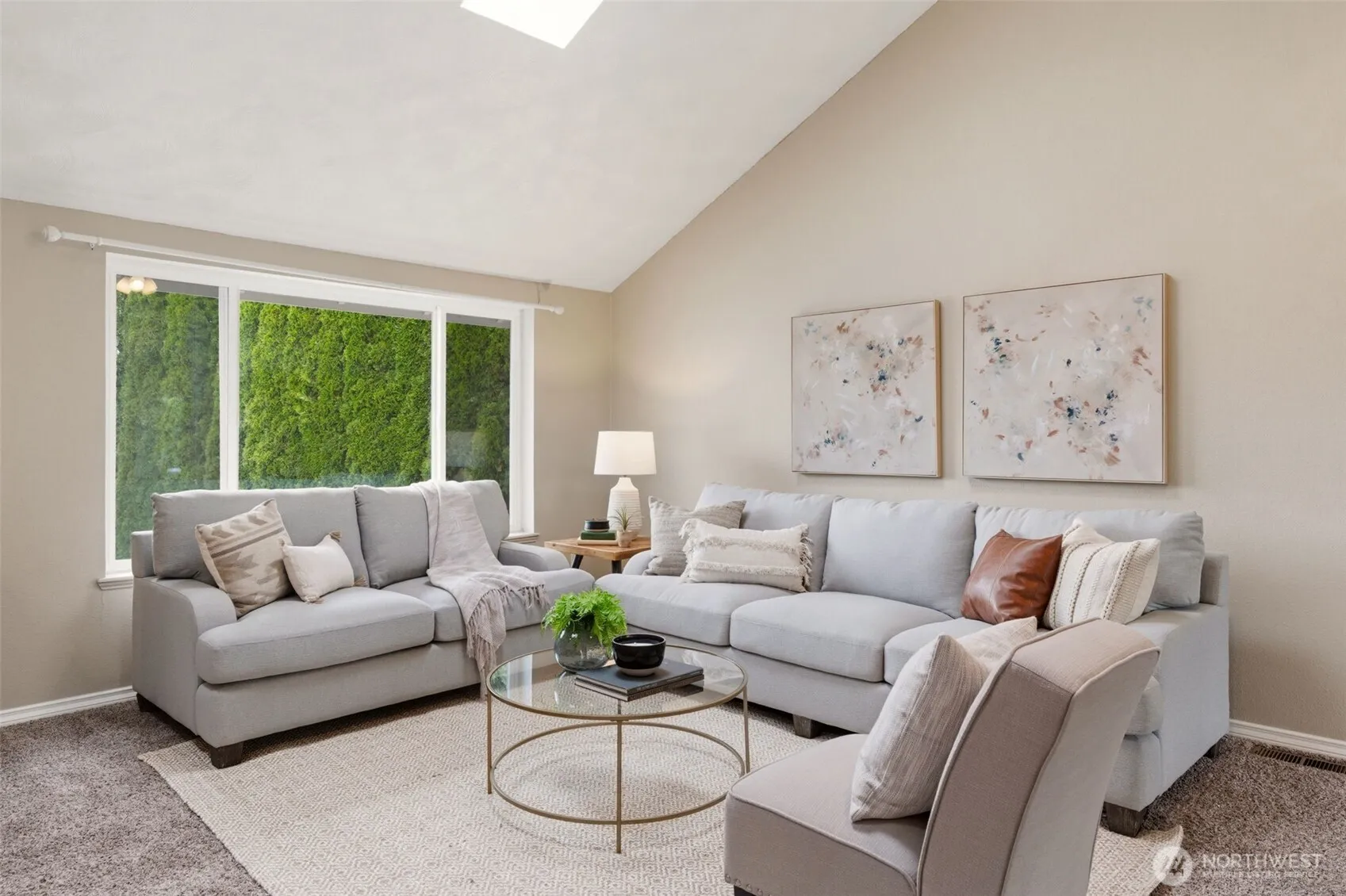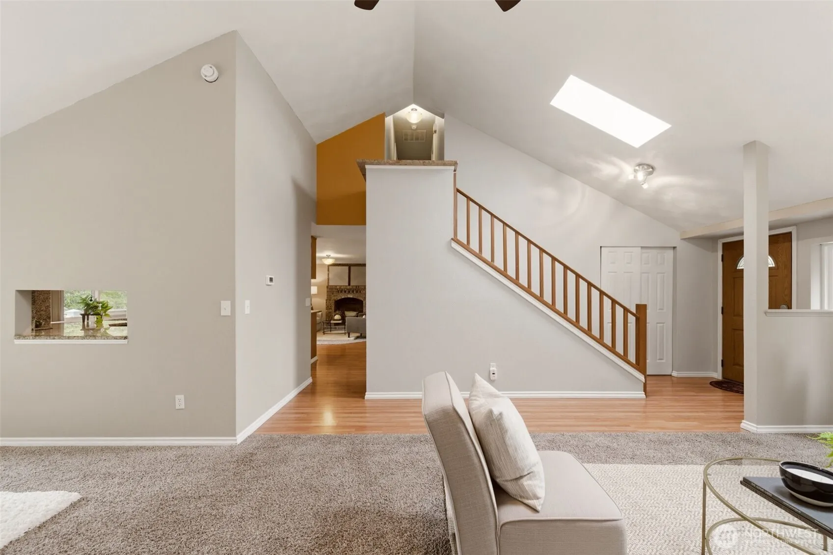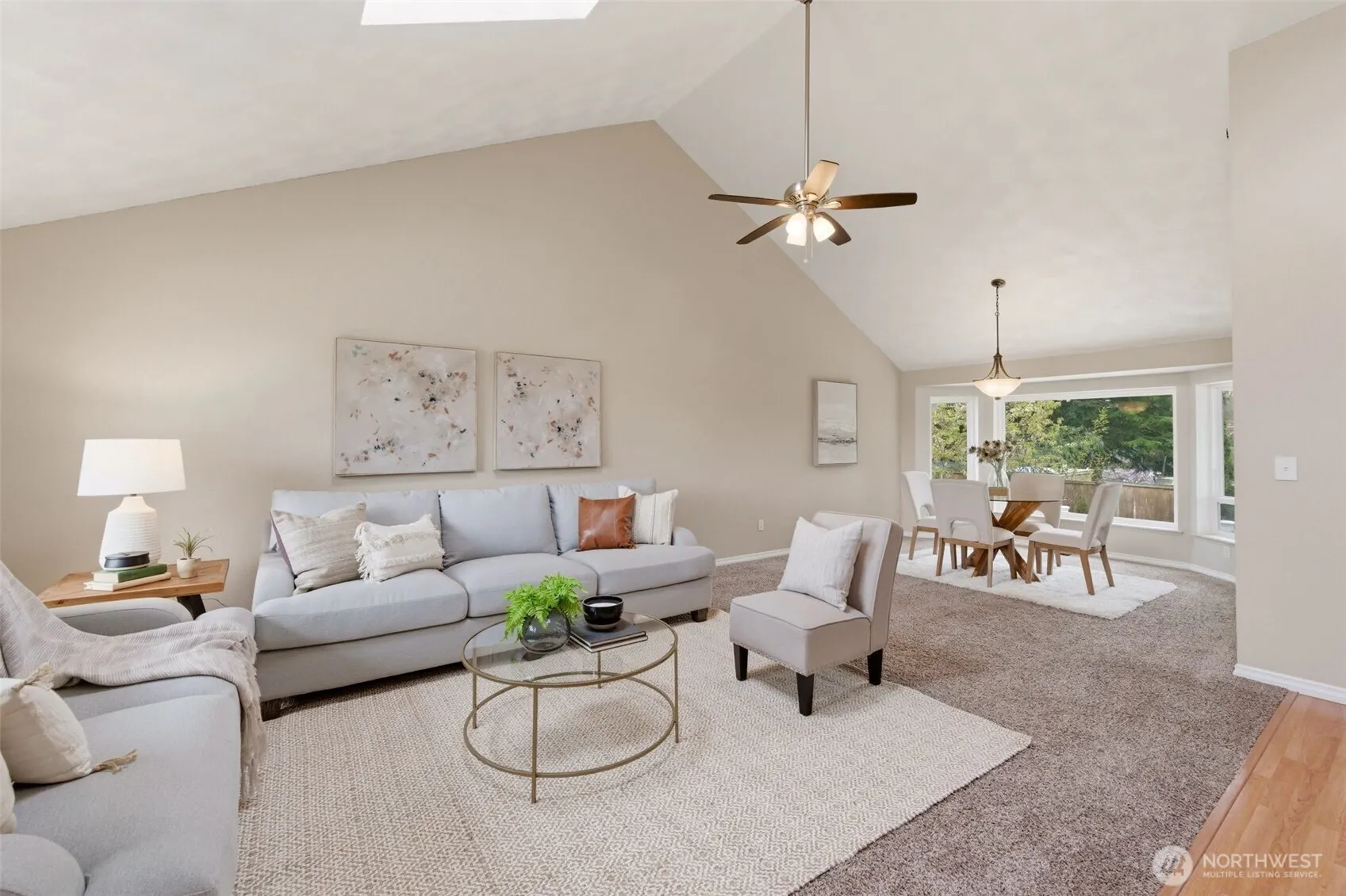 The Diamond of Holly Terrace! Brand new roof! All New Windows and Sliding Door! Newer driveway and sidewalk. Pride of ownership! A beautifully updated Lakewood home where vaulted ceilings, skylights, and abundant natural light create an open, inviting feel. The kitchen offers granite countertops, stainless steel appliances, bar seating, pull-out cutting boards, and a convenient pass-through to the dining area, complete with a charming bay-style nook. A continuous full-height backsplash adds a clean, cohesive finish. Elegant details shine throughout, including updated lighting, amber stone sinks in every bathroom, and distinctive diamond tilework in the showers. The primary suite features a ensuite bathroom and a spacious walk-in closet with built-in shelving and dual hanging space. The family room is anchored by a brick, wood-burning fireplace providing a cozy environment. Step outside to a tiered deck and patio showcasing a custom “compass rose” inlay—expertly designed and installed by the seller, a skilled concrete professional—mirrored in the beautifully crafted driveway. Surrounded by mature arborvitae, mature cherry trees, and a stone retaining wall, the oversized yard also offers RV parking potential. The garage includes extensive storage plus a heated flex space with window and closet—ideal for a home office, studio, or easily converted back to parking. Close to the beach, Steilacoom Park and shopping. A rare blend of craftsmanship, charm, and everyday livability.