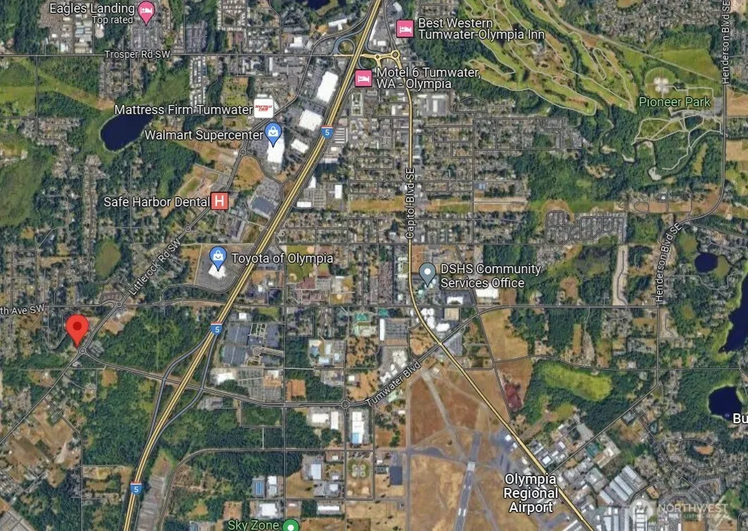 Maybe the best corner lot left for development in Tumwater. The property is currently zoned Multi-Family; however, the city is planning on continuing the road at the roundabout (see concept image) and has said that they would be open to changing the zoning to mixed-use. This is a great development opportunity. 99± acre lot zoned MFM Multi-Family 9-15 units per acre… so many more possibilities if changed to mixed use. Great location for a small apartment complex or townhomes. Located on a new roundabout at Tumwater Blvd and Littlerock Rd, a short distance from many state and city buildings. There is a new fully rented apartment across the street, 14 units being built to the north, and over 150 proposed units to the south… so the demand is there, and this is the perfect location. Just a minute or two off of I5. There is currently a 24×20 fully finished building with a large room and two additional rooms. It has 2 entrances. There is also a falling-down 3-bedroom house, and a fully ready RV site with water, power, and septic.