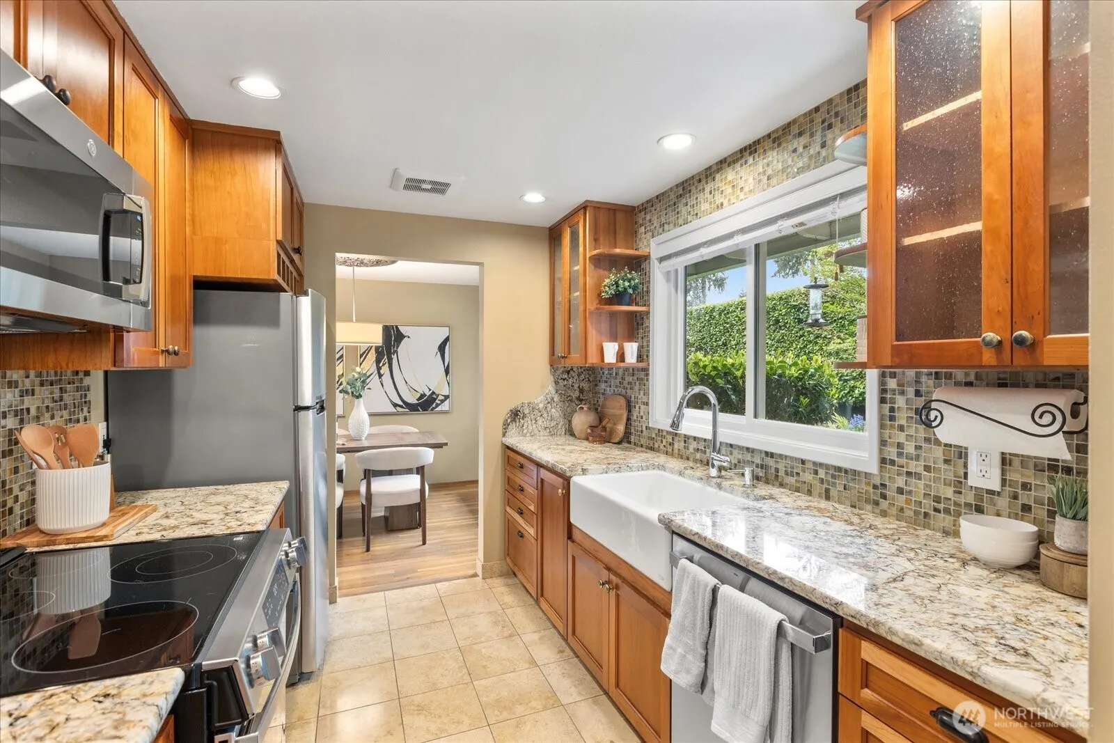 Located in Bellevue’s sought-after Lake Hills neighborhood, this beautifully maintained move-in ready rambler combines timeless character with thoughtful modern updates. Southern exposure provides abundant natural light and fills the interior through large windows, highlighting elegant natural stone, marble and hardwood floors. The updated kitchen features new stainless-steel appliances and flows seamlessly into the main living areas, creating an ideal layout for everyday living and entertaining. Step outside to your private, fully fenced backyard oasis. Thoughtfully landscaped with a sprinkler system, tranquil water features, and a custom stone patio, this space is designed for both relaxation and gathering. Whether hosting summer evenings or sipping your coffee on a quiet morning, this outdoor retreat delivers. An oversized two-car garage provides exceptional storage and versatile workspace options for all your hobbies, adding to the home’s everyday convenience. Enjoy the outdoors with nearby Evergreen Park, Phantom Lake Park and Lake Hills Greenbelt trails. Conveniently located near top-rated Bellevue schools with easy access to Lake Hills Library, Crossroads Mall, dining, shopping and Samena Swim & Recreation Club. This home is situated on a quiet street and is centrally located with easy commuting by transit, light rail, I-90 or 520 access. Seller pre-inspected for peace of mind – this move-in ready home is an exceptional opportunity you won’t want to miss.