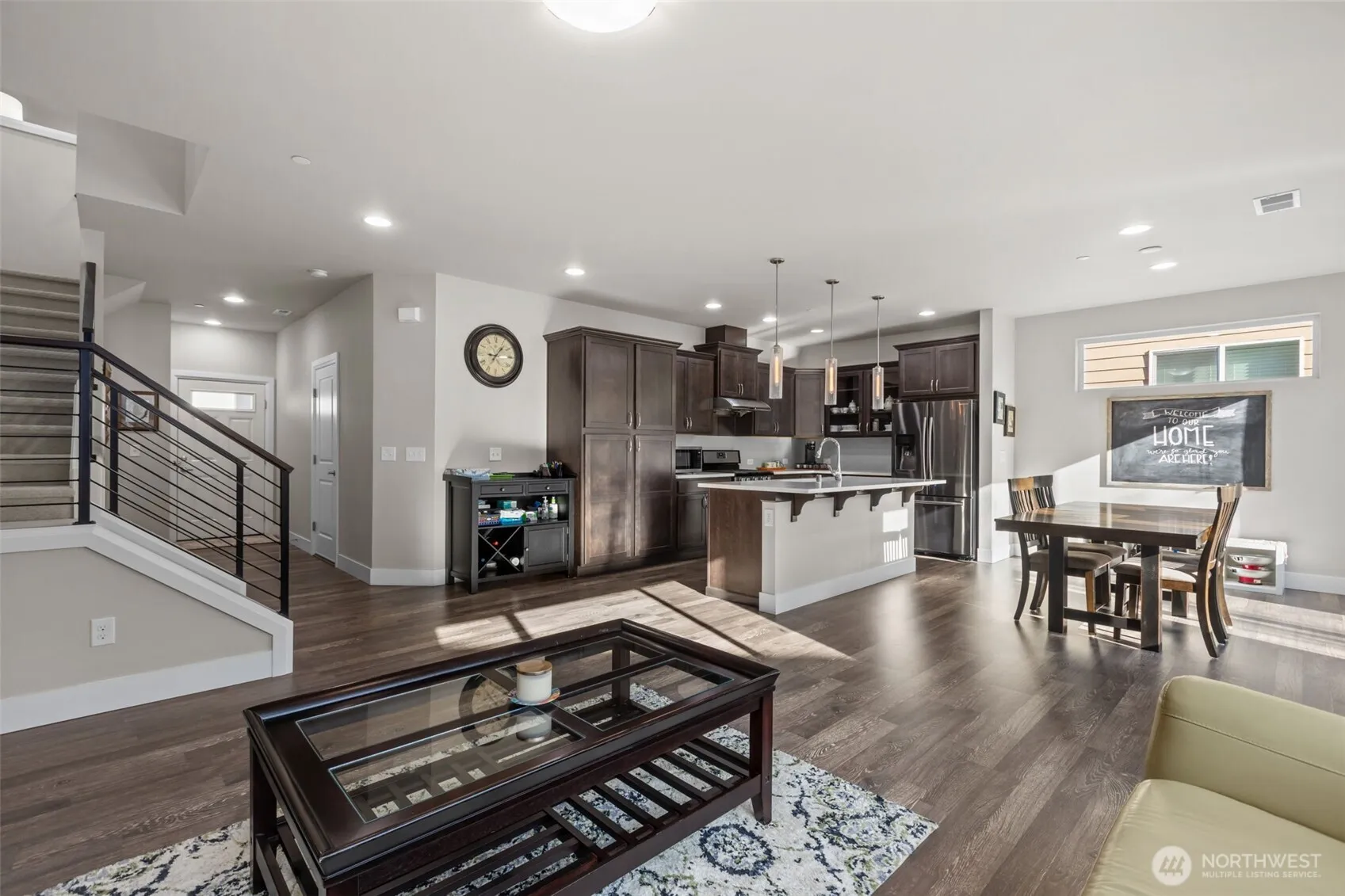Welcome to this beautifully maintained home in the highly sought-after Kingstone Community. This 3-bedroom home with a large bonus loft and 2.5 baths offers the perfect blend of comfort, function, and thoughtful design. The main level showcases a spacious, open-concept layout with luxury LVP flooring and abundant natural light. A convenient half bath and generous entry closet add everyday functionality. The living area is anchored by a cozy gas fireplace, while the kitchen truly shines as a chef’s dream complete with quartz countertops, custom cabinetry, upgraded stainless steel appliances, a modern range hood, and a large island. Upstairs, enjoy a versatile loft, ideal for a media space or play area. The primary suite is a true retreat with vaulted ceilings, a spacious layout, a 5-piece bath with soaking tub and separate shower, and a generous sized walk-in closet. Two additional large bedrooms, a full bath, and a spacious laundry room complete the upper level. Additional highlights include a well-equipped garage with storage racking and sensor lighting, plus gated access on both sides. Step outside to a private patio and low-maintenance yard perfect for relaxing or entertaining. Ideally located near Alderwood Mall, Costco, dining, parks, and with easy access to I-5, I-405, and the Ash Way Park & Ride (future light rail). Located within the desirable Edmonds School District. Don’t miss this one! Schedule a tour today!