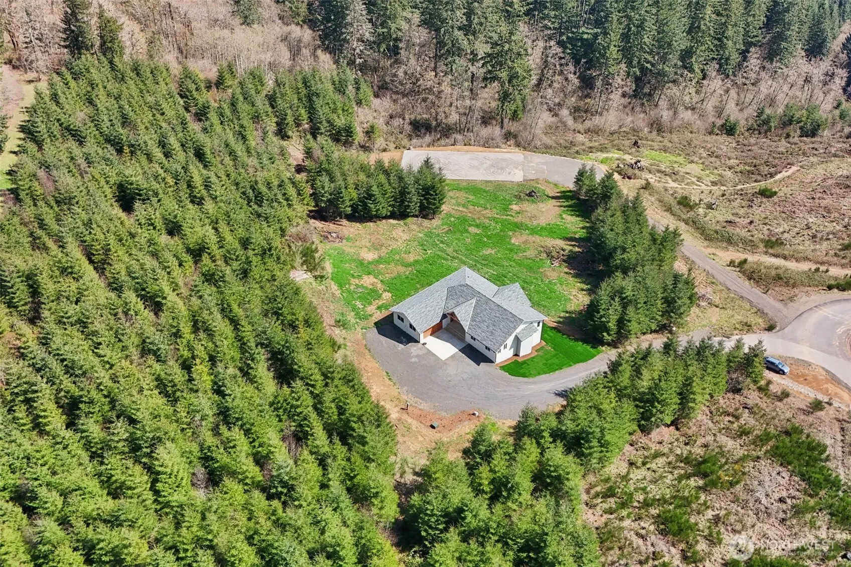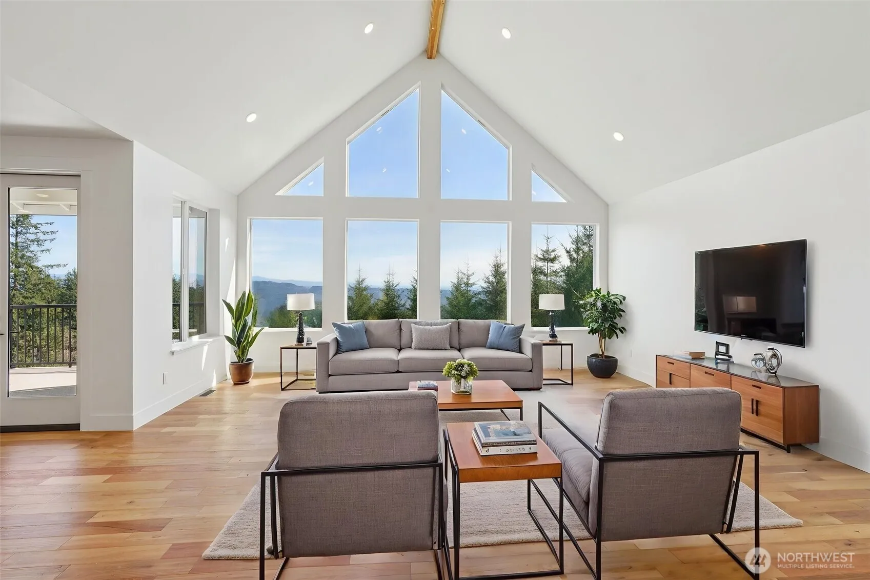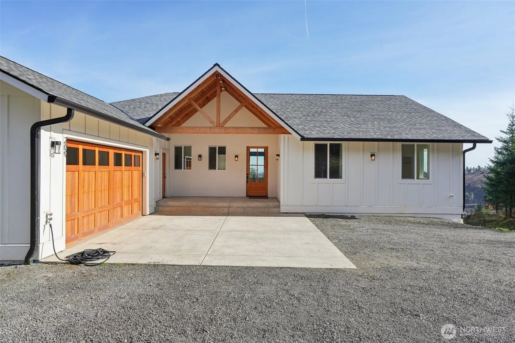 Tucked inside a gated Woodland community, this impressive 3,000 sq ft daylight ranch offers the perfect blend of space, style, and opportunity. The main level features 3 bedrooms and 2.5 bathrooms, highlighted by a stunning living room with soaring vaulted ceilings and abundant natural light. The modern kitchen is designed for both everyday living and entertaining, complete with quartz countertops, an eat-at island, and a walk-in pantry. In addition to the open-concept living areas, the main floor includes a versatile family room or playroom and a dedicated office space. The spacious primary suite offers a luxurious retreat with a tiled walk-in shower, double vanity, and a generous walk-in closet. Downstairs, the mostly unfinished daylight basement is a blank canvas ready for your vision—ideal for additional living space, a home gym, or potential ADU setup, with a finished bathroom already in place. Enjoy breathtaking views of the valley and Mount Hood from this exceptional property, offering both privacy and endless potential.