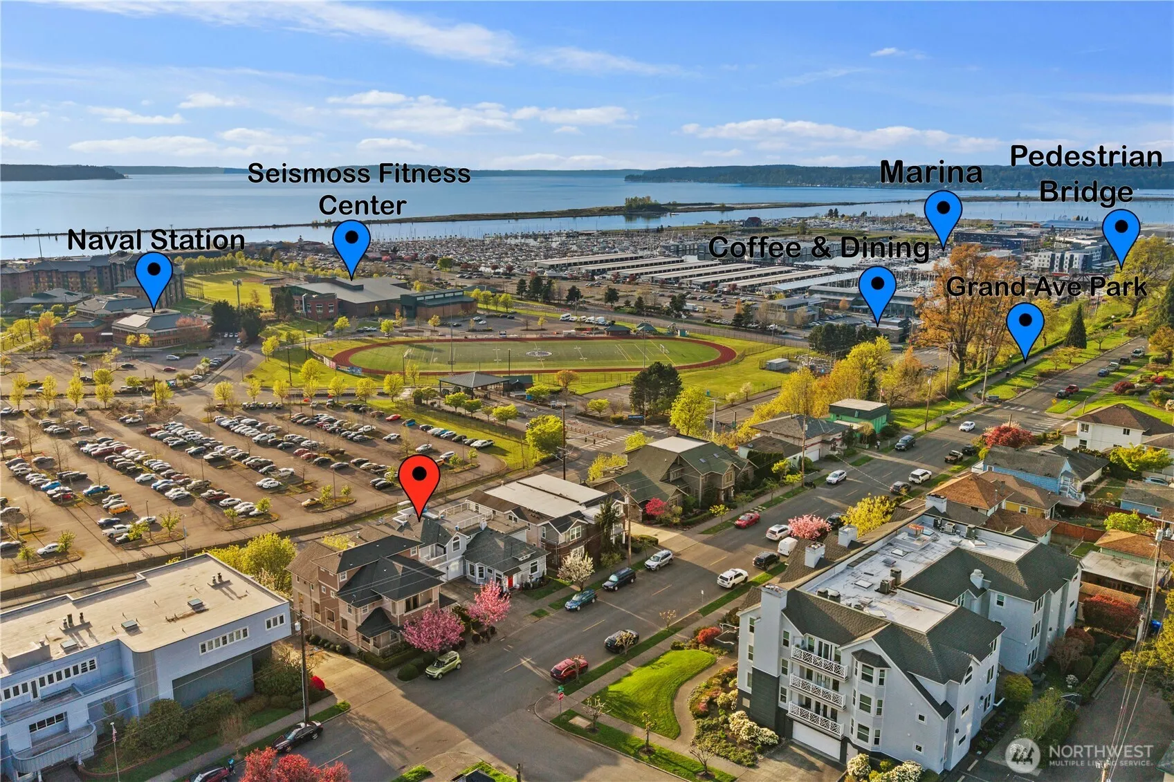 Welcome to Everett’s sought-after Bayside neighborhood! This 3bd/2ba home offers stunning ~150° Panoramic Puget Sound views + garage, blending comfort w/an unbeatable location. Inside, enjoy open living spaces w/fireplace and large windows framing stunning water & sunset vistas. Unwind in the primary suite’s Jacuzzi tub with views of the Sound! The primary bath includes dual sinks complete with vanity nook. 2 additional bedrooms perfect for guestroom, office, or flex space. Functional kitchen w/built ins, pantry and gas stove. Hardwood and new carpet complete the space. Relax in the spa on your large private deck, soaking in breathtaking sunset views over the water. Step outside & you’re moments from Grand Ave Park’s bluff-top viewpoints, trails & convenient pedestrian bridge to the waterfront. Minutes to Port of Everett marina for popular dining or coffee, walks & coastal vibes, plus downtown Everett’s shops, cafes & entertainment. Walkable, scenic & commuter-friendly with quick I-5 access—this home delivers the lifestyle buyers seek: peaceful streets, nearby water views & everything within reach. The views are a must-see in person!