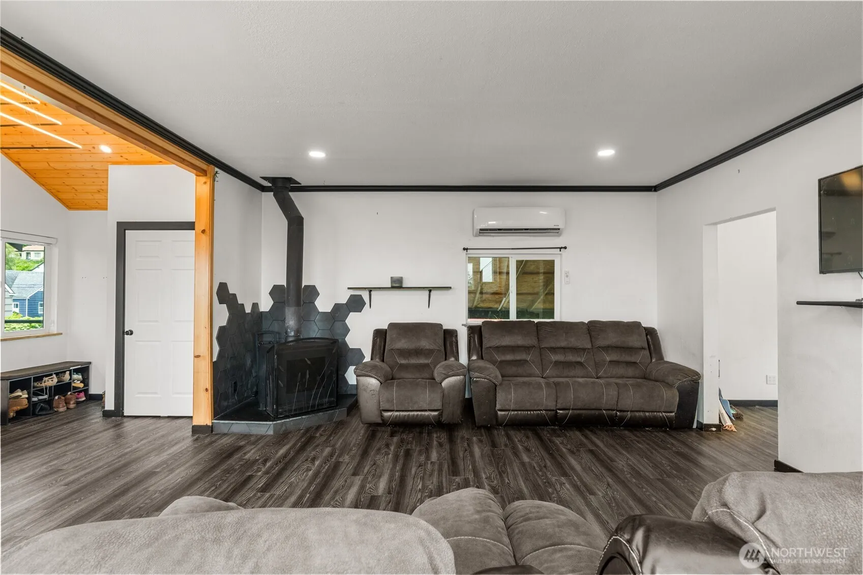 This recently remodeled 1911 home in Aberdeen is perched on a dead end road w/ peekaboo bay/river views and includes 2010 sq. ft. of living space. The home features a 3 bed, 2 full bath layout with laminate flooring, wood accent trim, and modern upgrades throughout. The main floor features a spacious living room w/ wood burning fireplace, dining room, main bathroom w/ walk-in tiled shower and bath tub, and kitchen w/ modern countertops, cabinets and appliances. The upper floor serves as a private en-suite retreat, featuring the main bedroom w/ full bathroom while the bottom floor is a fully finished basement w/ 2 full bedrooms, versatile lounge, and utility area w/ laundry hookups. Additional features include a one-car garage, carport, front/back deck, concrete patio and fenced back yard.