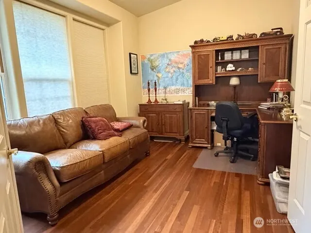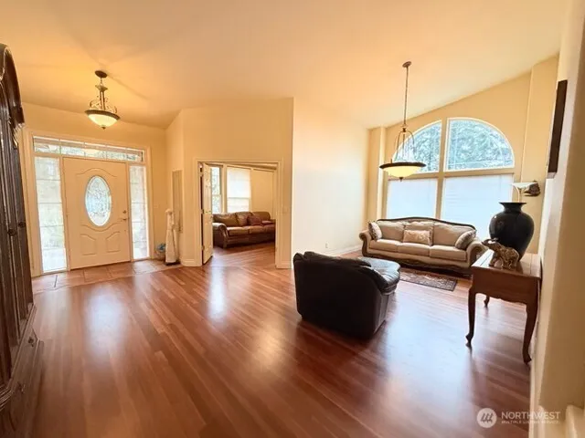 Peaceful country living awaits on this private 2.5-acre retreat at the end of a quiet road—just minutes to town and I-5. This elegant, custom-built, one-level home offers wheelchair accessibility and an open-concept design with vaulted ceilings, magnificent windows, and spectacular views. Inside you’ll find Brazilian cherry hardwood floors, natural cherry wood cabinetry, granite countertops, custom slate backsplash, Italian tile flooring, stainless steel appliances, a built-in 52” TV, and a cozy gas fireplace in the great room. The luxurious primary suite features a jetted tub, steam shower, and spacious walk-in closet. Two additional large bedrooms plus a den/office provide flexible living space. Step outside to a new raised deck overlooking your own gardening paradise—14 blueberry bushes, huckleberries, mature grapevines (red and white), multiple apple, pear, and plum trees, plus raised beds ready to grow. A greenhouse, large powered shed with loft and water, potting shed with marble counters, chicken coop, two 275-gallon water tanks, 600-watt solar panels, attic solar fans, and a newer roof (1.5 years old) add function and sustainability. Additional highlights include abundant under-home storage (formerly used as a winery), landscaped grounds, and all furniture included—making this an ideal full-time residence, retreat, or potential Airbnb opportunity. Wake up to breathtaking views—this home truly has it all.