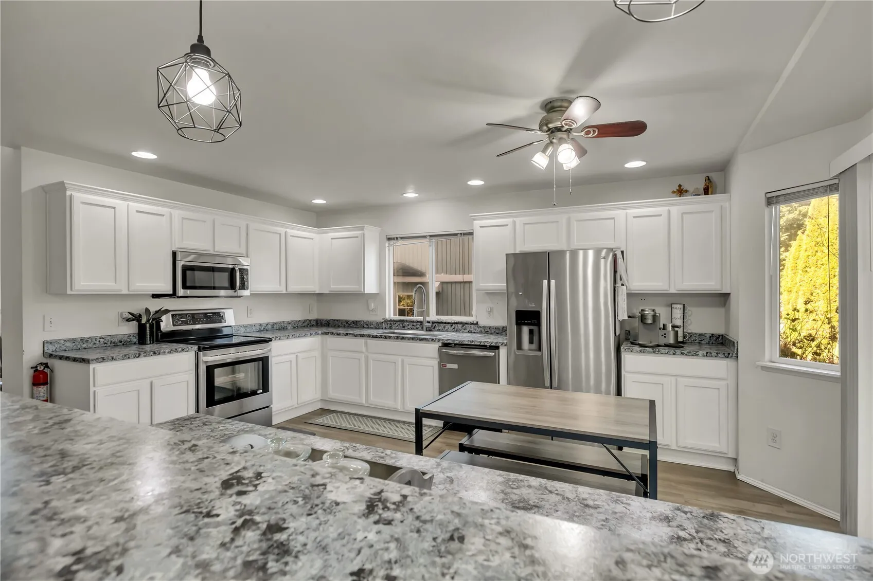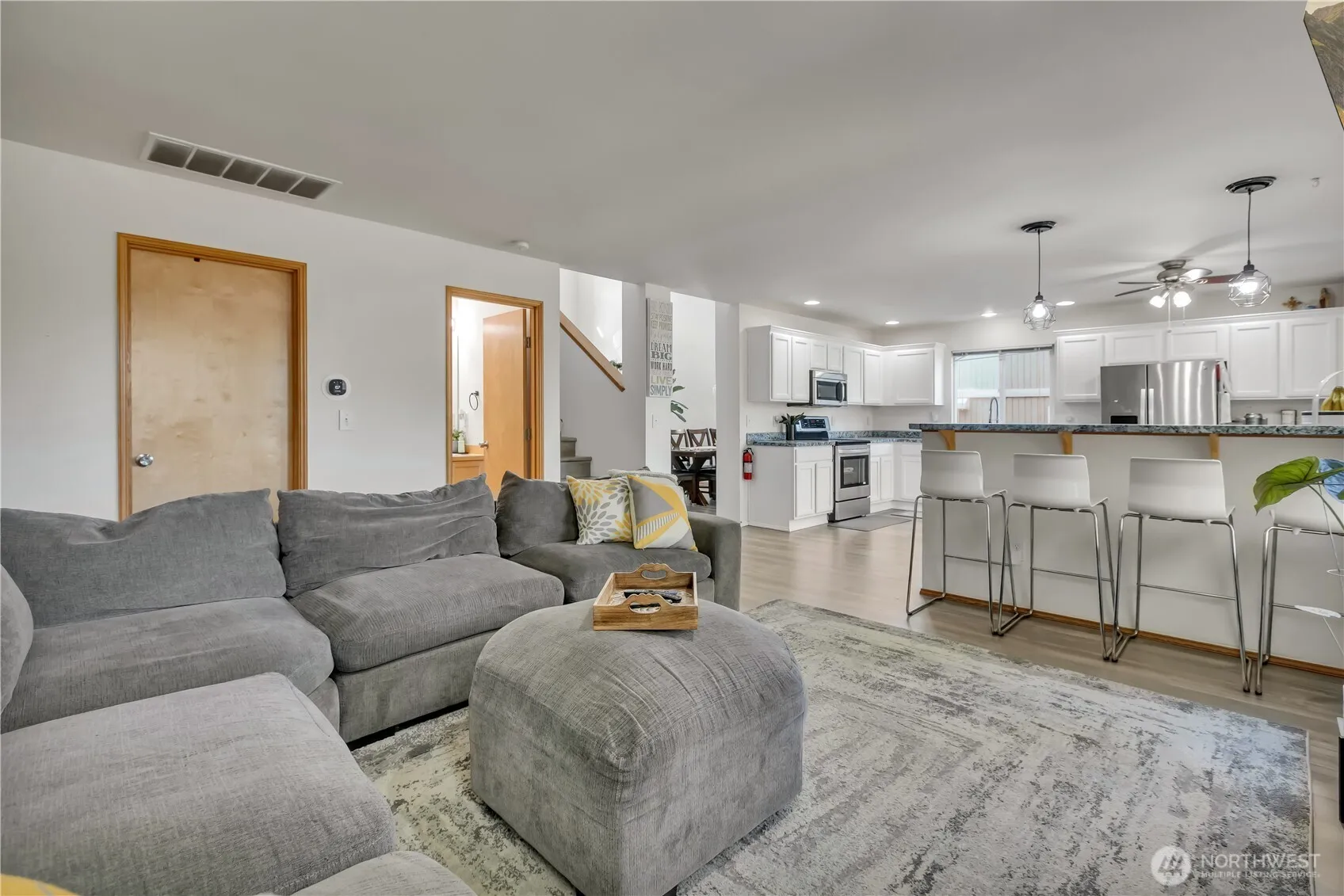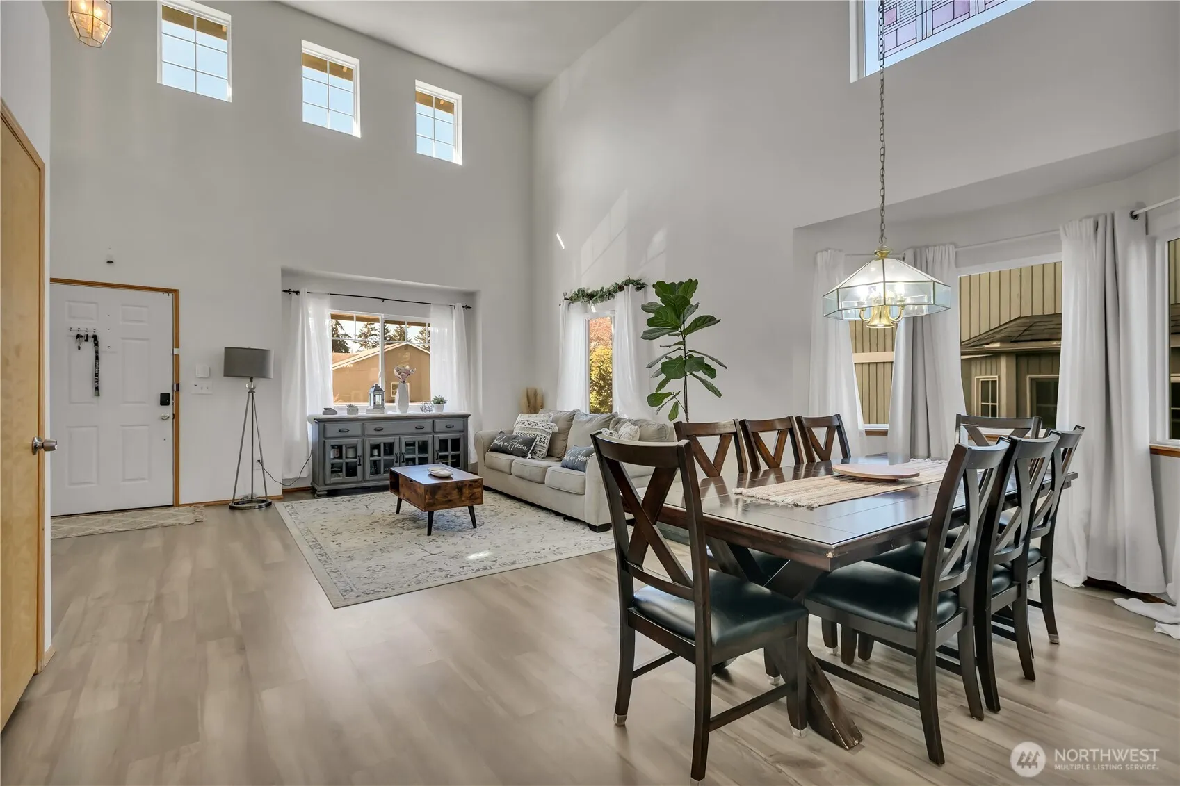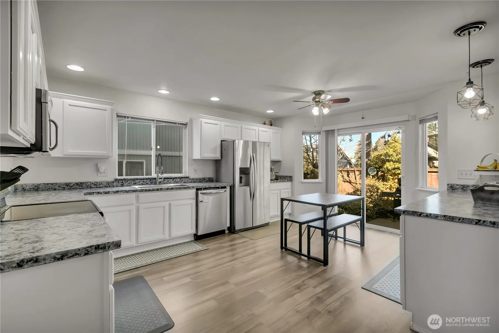 Welcome home! This beautiful home located in a quiet, friendly, desirable neighborhood! Nestled in a quiet cul de sac. The home offers 5 bedrooms, 2.5 bathrooms. Dramatic high vaulted ceilings with abundant of natural light, welcomes you to a open floor plan! Kitchen with alot of cabinets, countertop space, eating nook with a slider to patio & fenced rear yard. Family room with gas fireplace. One bedroom on the main floor is perfect for a guest room or an office. Continuing the vaulted ceiling in the master suite along with 5 piece bath. 2 car garage. All appliances are included. Close to parks, schools, & Green River College.