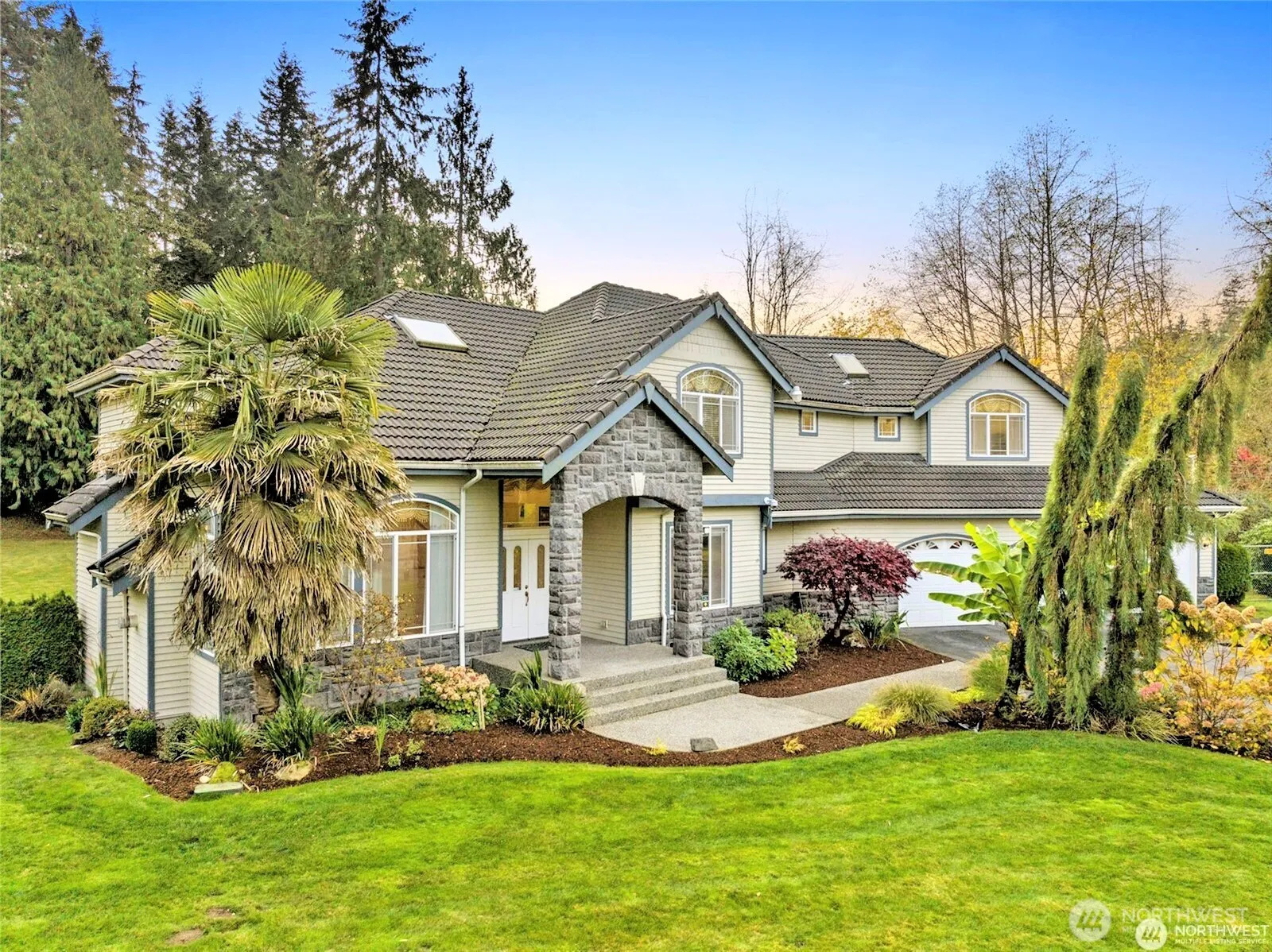 Discover this exceptional single-family home nestled in a quiet, friendly community in the Clearview area of Snohomish. Situated on an expansive 1.41-acre lot (over 60,000 sq. ft.), this stunning property offers both space and comfort to accommodate a variety of lifestyles. Step into a grand entryway featuring soaring vaulted ceilings and beautiful hardwood floors that flow throughout the home. With approximately 3,717 square feet (buyer to verify), this spacious residence features 4 bedrooms and 2.5 baths, including a luxurious 5-piece primary suite with a walk-in closet. Additional highlights include a durable tile roof and a deep, oversized 3-car garage, providing ample room for vehicles, storage, or recreational gear. Enjoy outdoor living on the large backyard deck, perfect for entertaining or relaxing, along with generous grounds offering plenty of space for RV, boat, or additional parking.