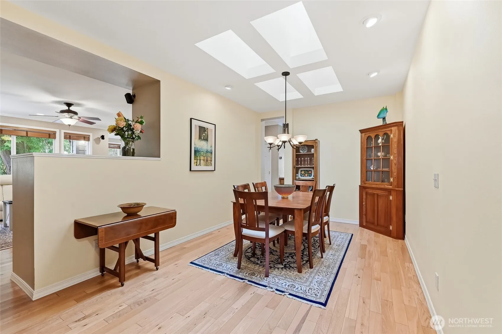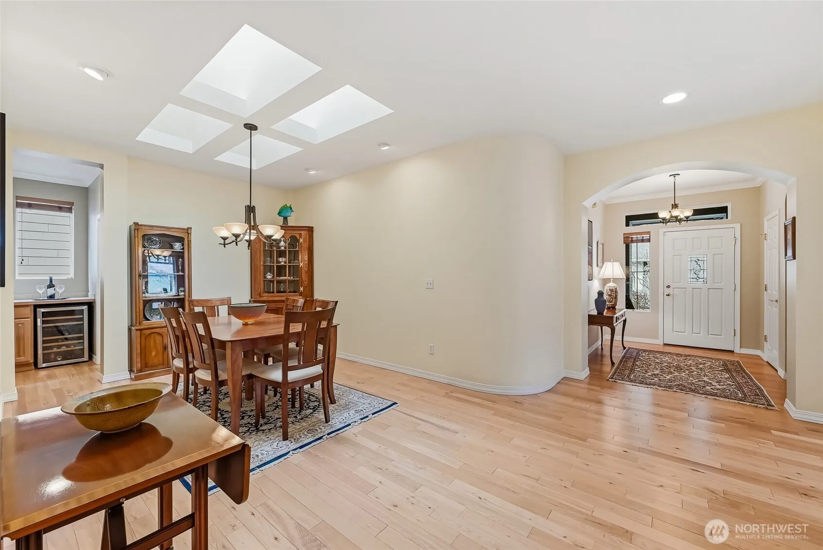 Captivating greenspace views that expand out to the golf course from this beautiful Bainbridge home. Enjoy easy living in this one level home with a peaceful & private setting just a couple of level blocks to the clubhouse. Warm hardwood floors run through the main living areas and there are distinctive architectural design elements such as crown molding, the curved wall and four panel skylight. The great room works perfectly for today’s lifestyles & has a surround sound system that includes a Denon amplifier and Sony speakers. The dining room seats 12 and is a wonderful space for holiday and special occasions dinners. Island kitchen with extra cabinets + pull-out shelves, wine fridge and a convenient day desk. Handsome office with gorgeous wood bookcases, cabinets, desk spaces and glass doors. Primary bedroom w/a ¾ bath, linen cabinet & walk-in closet w/organizers. Guest bedroom & full bath. Brand new W/D plus a utility sink in the laundry room. Generous garage w/work bench and shelving. Fully fenced backyard, nice deck and brick patio w/an included gas BBQ. New attic insulation, H20 tank & recirc hot water pump. Air con for hot summer days. A short jaunt to the clubhouse, the hub of Trilogy activities! Pre-inspected. Ages 55+