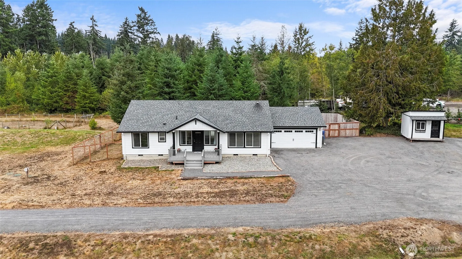 Don’t miss this great opportunity to live away from the hustle and bustle, yet 7 min from I-5. This 5+ acre parcel has recent improvement of a 1840 sqft 3-Bay SHOP w/concrete floors (strong enough to install car lift), heated, center RV door, plus 2-bays w/electric openers. Additional 10×40 lean-to for storing wood, tractors etc. The home offers 3bed/2 full baths, den, mudroom/laundry from attached dbl car garage. Garage has cool epoxy flooring, insulated garage door, NEW whole-house filtration system AND wired for generator. Newer tile flooring in main living and LVP in bedrooms. The kitchen will make you go WOW! All new cabinets with tons of storage. Low cost living – put this one on your list! Back on the market – no inspection done.