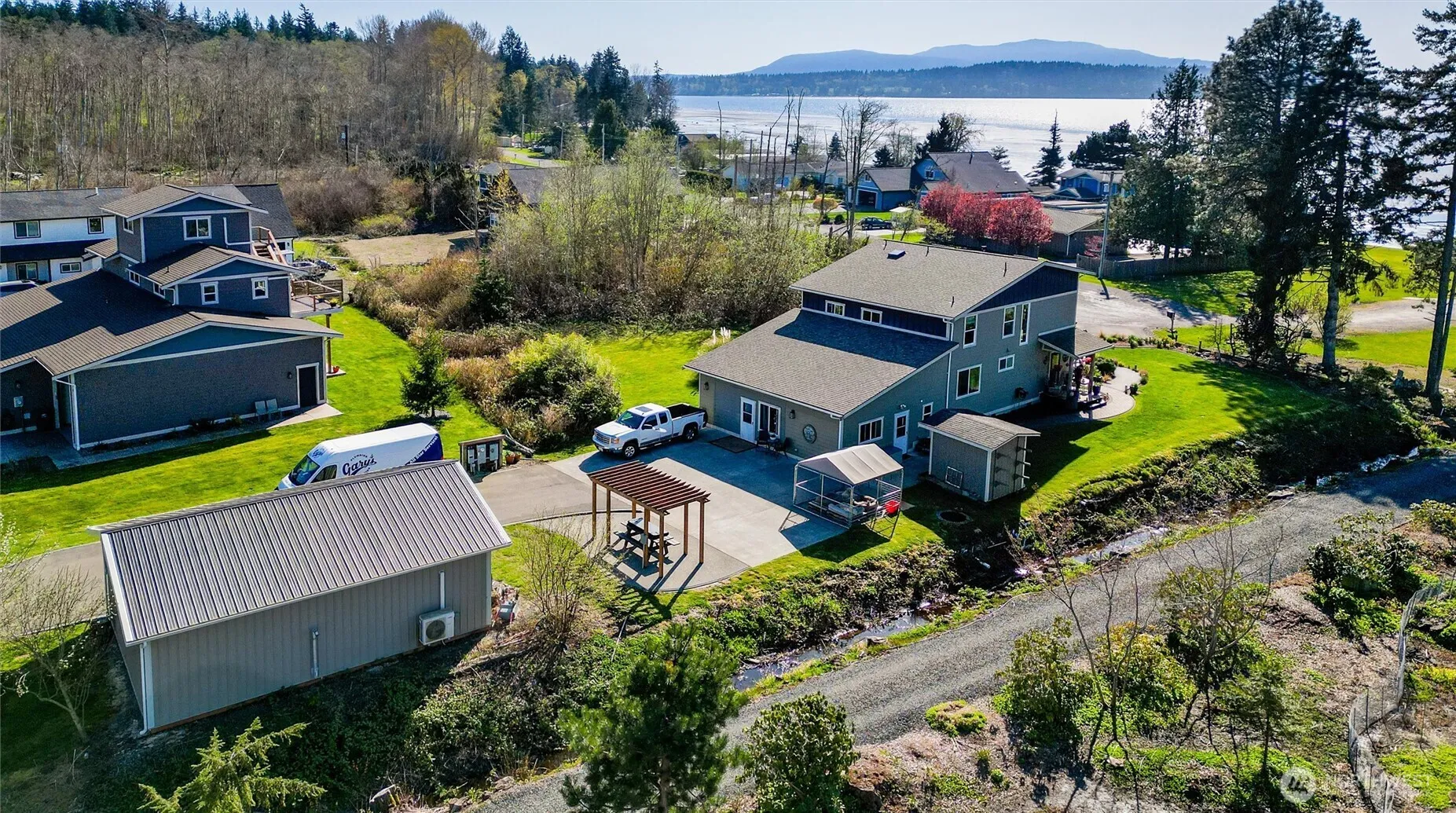Welcome to this one-of-a-kind 3-bed, 2.75-bath home offering stunning views, versatile living, and exceptional outdoor space. Wake up to serene water vistas from the primary bedroom and unwind with breathtaking sunsets from anywhere on the property. Designed for both comfort and functionality, the home features spacious living areas flooded with natural light, a well-equipped kitchen and seamless indoor-outdoor flow including a fully functional ADU providing excellent flexibility for guests, rental income, or multigenerational living. The property truly shines with its brand new double-insulated 24×30 ft shop with heat & power ideal for hobbies, storage, or business use. Garden enthusiasts will appreciate the dedicated garden spaces ready for planting, relaxing, and enjoying the outdoors. Relax on the composite deck to take in endless sunsets. With tons of updates including new asphalt & pathways, mini splits throughout, floors & paint this home has it all. Situated on a double lot that includes 2 ownership shares of the nearby beach! Whether you’re seeking a full-time residence or a private retreat, this property offers a rare combination of waterfront living, usable land, and income potential!
