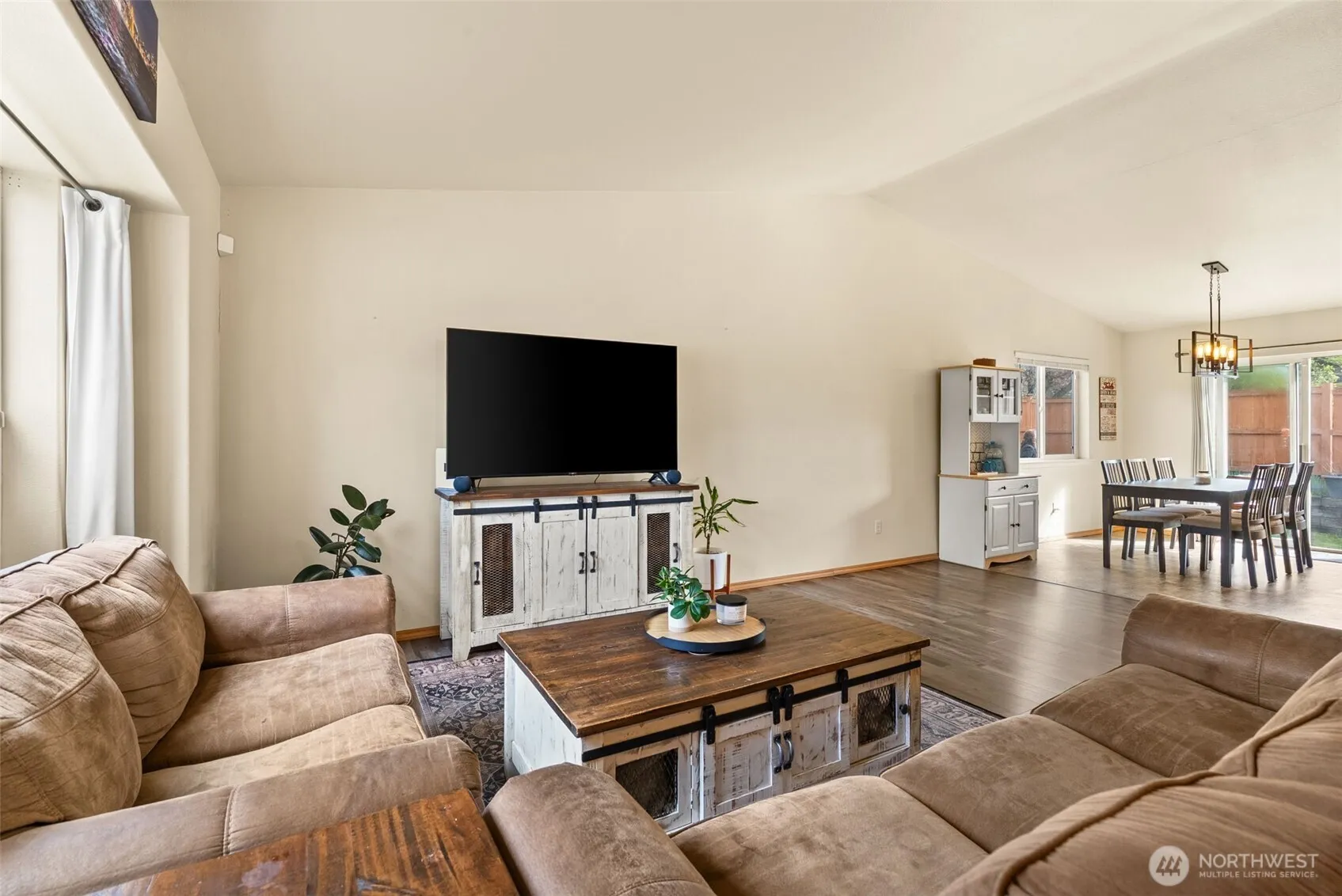 You’ll fall in love with this charming 3 bed, 2 bath rambler in Yelm featuring an open-concept layout and vaulted ceilings that create a bright, airy living space. Kitchen opens to dining area and backyard, offering great flow for everyday living. Primary bedroom includes a full en-suite bath and walk-in closet. Down the hall you’ll find two more bedrooms. Spacious backyard with established mature seedless Concord grapevines. The roof was redone in 2018, new water heater installed in 2024 and new appliances! Located in a quiet neighborhood, ideal for walking and enjoying the outdoors. Convenient to local amenities, schools, and commuting routes. Come call this one yours before it’s gone! VA ASSUMABLE AT 2.75% Offer Review 4/13/26 2pm