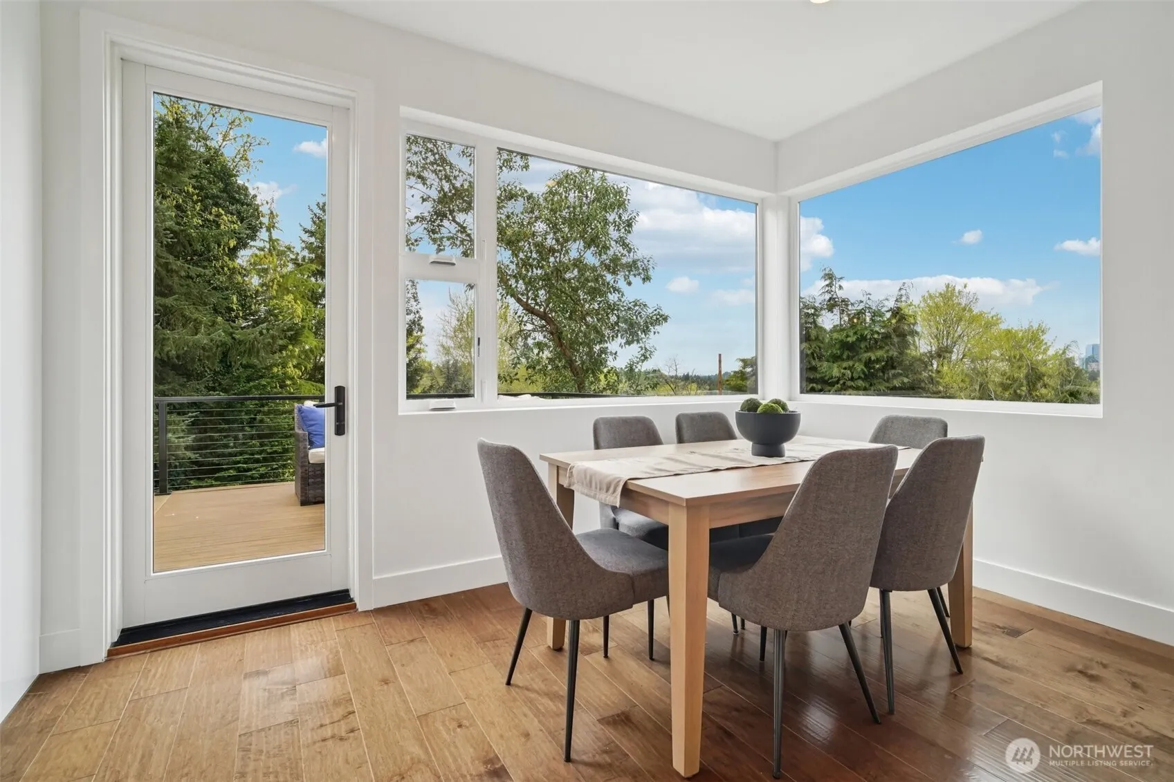 Nearly HALF AN ACRE in Bellevue, with panoramic views of Downtown Bellevue, the Seattle skyline, and the Olympics from nearly every room. Custom-built in 2021, the open-concept main level features an entertainer’s kitchen with premium finishes and a west-facing deck made for sunsets. Upstairs offers three bedrooms plus a bonus room, while the daylight basement includes a large living area and private ensuite, ideal for guests or multi-gen living. Built right with a heat pump, tankless water heater, ERV, whole-house generator, 50-year metal roof, fire sprinklers, heated floors, and solid-core doors. Smart home ready: dimmable lighting, automated shades, built-in speakers, and Cat5. Oversized 2-car garage, EV-ready, ample parking. Minutes to I-90, I-405, light rail, Downtown Bellevue, and top schools.