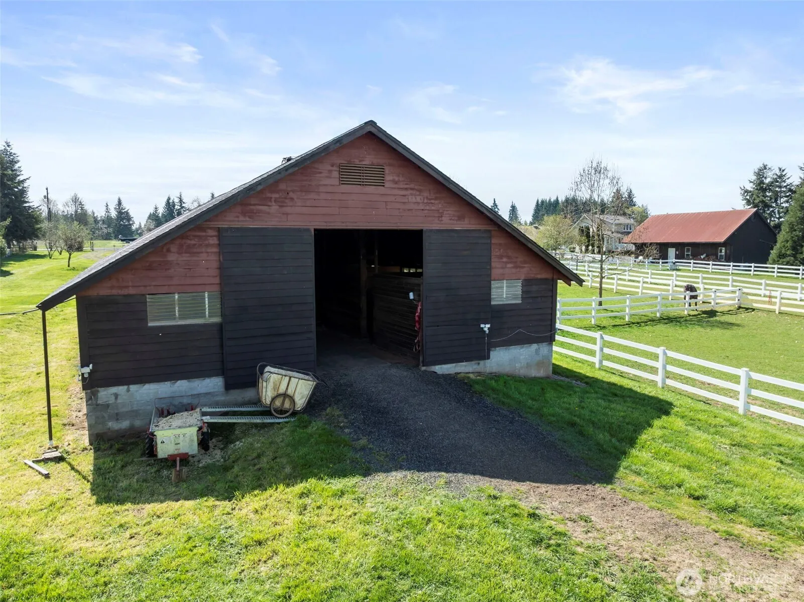 Discover a truly exceptional equestrian property set on 8.02 level, usable acres, offering the perfect blend of functionality, comfort, and rural charm. The beautifully maintained single-level home features 3 bedrooms and 2 baths with an open-concept design, ideal for both everyday living and entertaining. Cozy up by the wood-burning fireplace and enjoy the many recent upgrades, including fresh interior and exterior paint, new vinyl plank flooring, stainless steel appliances, and a heat pump with A/C for year-round comfort.Equestrian enthusiasts will fall in love with the gorgeous 28’ x 110’ barn, thoughtfully updated with tongue-and-groove stalls and walls, improved lighting, an exhaust fan, and a surrounding French drain system. The property is well-equipped with four fenced pastures, runways, and a paddock, all secured with durable vinyl fencing.Additional features include a unique sunken greenhouse with custom potting areas, a massive 24’ x 48’ shop with an oversized door—perfect for RV or boat storage—a poultry coop, fruit trees, and expansive open space for animals, hobbies, and recreation. Whether you’re looking for a working horse property or a peaceful country retreat, this one has it all—bring your animals, toys, and vision!