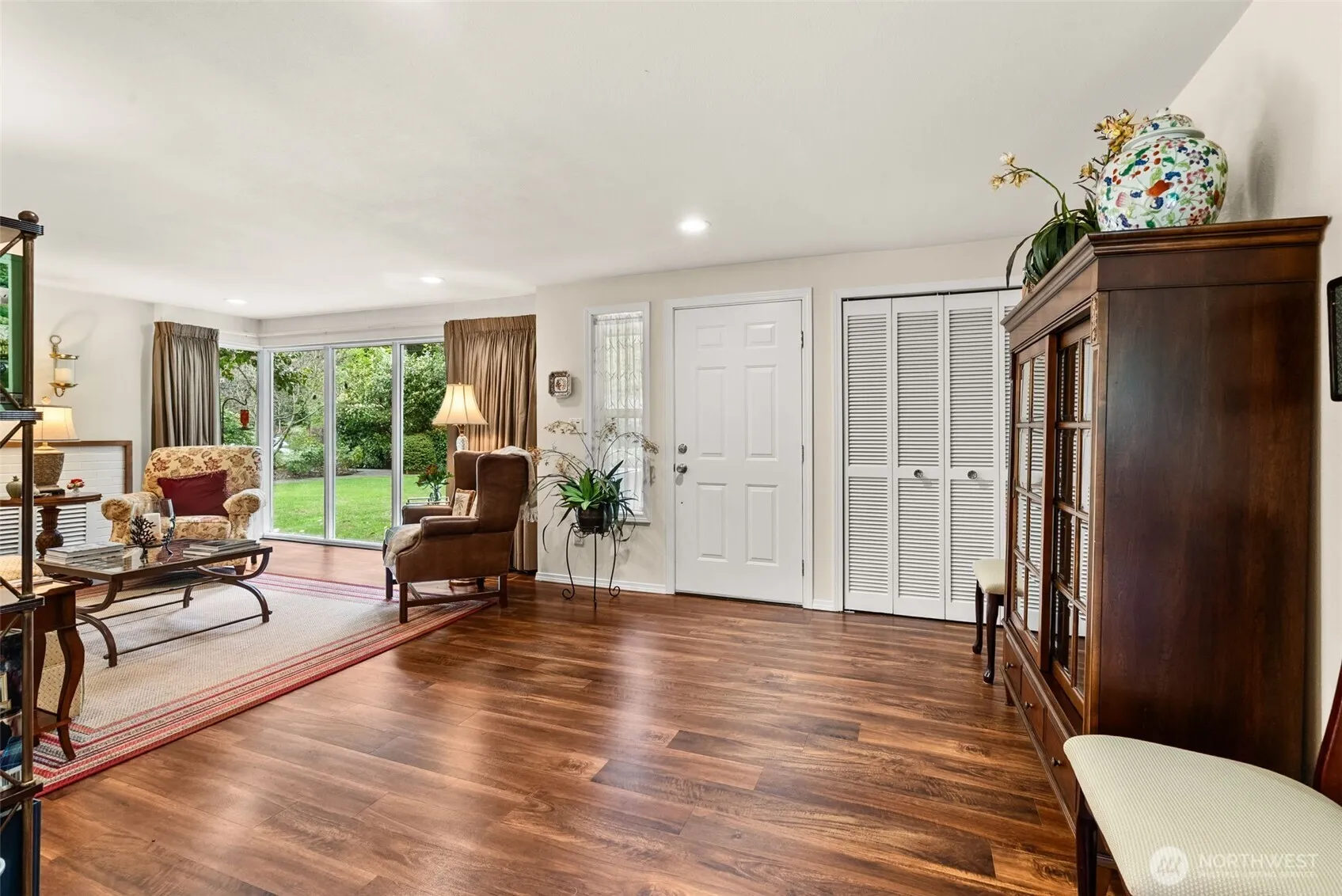 SINGLE level home providing the backdrop for an incredible life in the heart of Lakewood. Rambler floor plan provides all living areas in a well thought out design nestled on an ample sized corner lot over half acre w/ mature landscaping; a true gardeners dream. Living room w/ walls of glass; dining room flows to outdoor patio; NEW KITCHEN w/ stainless steel appliances and quaint sitting area w/ shutters. PRIMARY BEDROOM w/ charming brick fireplace; ensuite bath and oversized window to take in views of the mini orchard. FAMILY ROOM with massive, vaulted wood clad ceiling and access to the rear patio. Added perks include new ROOF IN 2026, EXTRA Parking, GARDEN BEDS, Extensive MATURE PLANTINGS. The outdoor spaces are as well cared for as the interior; from fruit trees, bulbs, hedges and flowering shrubs you are sure to enjoy the outdoor spaces as much as inside. The neighborhood has undergone a new sidewalk around Gravelley Lake-3 Miles long! All this is located close to the TACOMA COUNTRY CLUB, area Lakes, services and freeway access. Located where charm, care and convenience come together.