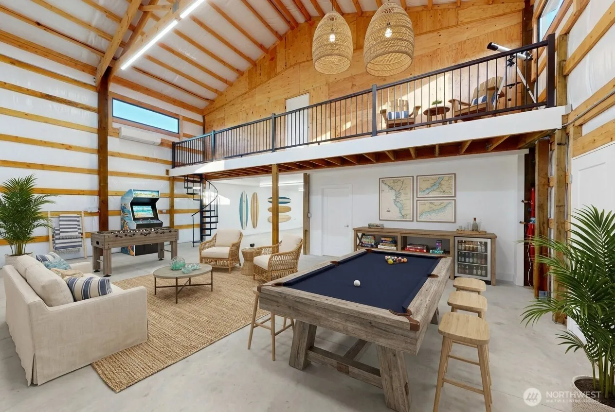 Presale! Pick your colors! Discover the ultimate blend of modern sophistication, functionality, and stunning views in this exceptional 30×70 shop in Westport, WA. Built with 6×8 posts, 19′ eaves, and insulated walls, the shop features two 14×14 power-operated doors, a 5-inch concrete slab, 26-gauge metal siding, and smart amenities like WiFi-controlled lighting and heating, Ring cameras, and a 30-amp RV plug. Natural light pours through four high-set windows, while a 4×30 Timber Tech balcony offers breathtaking water and sky views. Above, a 900 sq. ft. smart apartment boasts 2 bedrooms, 2 baths, vaulted ceilings, quartz countertops, tiled master showers, and a spiral staircase connecting to the shop below. An additional full bathroom with its own water heater adds convenience. Outdoor highlights include a 6×10 TimberTech deck with 5′ cladded steps, perfect for soaking in the gorgeous coastal scenery. Situated in picturesque Westport, this property offers a rare chance to combine work, play, and serene living. Don’t miss out—your dream space. Photos are of like build on a different lot.