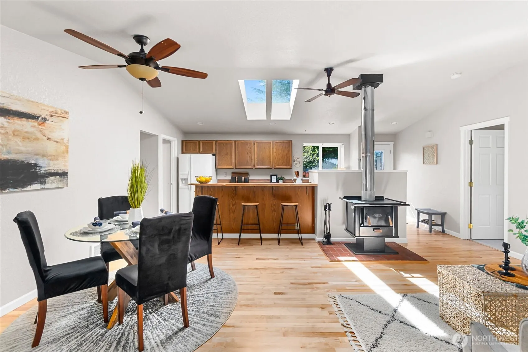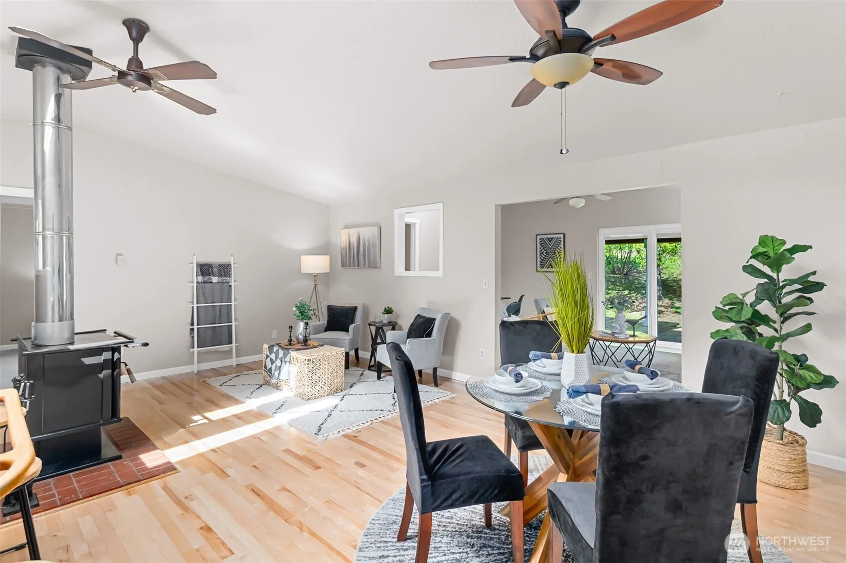 Welcome to this perfectly located rambler on a spacious lot surrounded by open spaces, offering a wonderful sense of privacy and calm. As you step inside, you’re greeted by natural light and the warmth of a cozy wood stove, creating an inviting and comfortable atmosphere. The kitchen is positioned to take in views of greenery from both the front and back windows, making everyday moments feel connected to the outdoors. A flexible layout includes a second living area ideal for an office, hobbies, or additional gathering space, while the split-bedroom design offers added privacy and separation. Thoughtfully refreshed, this home features a newer roof, all new interior paint, brand-new carpet, and beautifully refinished hardwood floors. The crawl space and attic have been recently inspected, with a new vapor barrier and crawl space covers adding peace of mind. The fully fenced backyard provides space to relax and unwind, complete with a private covered deck where you can enjoy the sounds of nature with surrounding open space on two sides. Outbuildings offer additional storage or workspace options. Set in a quiet neighborhood close to neighborhood park and elementary school, close to Costco, The RAC, and the Nisqually Wildlife Refuge, with easy access to I-5 and just minutes to JBLM. Ample parking includes space for RV parking in addition to a two-car garage, offering flexibility for a variety of needs. Peacefully private and truly move-in ready.