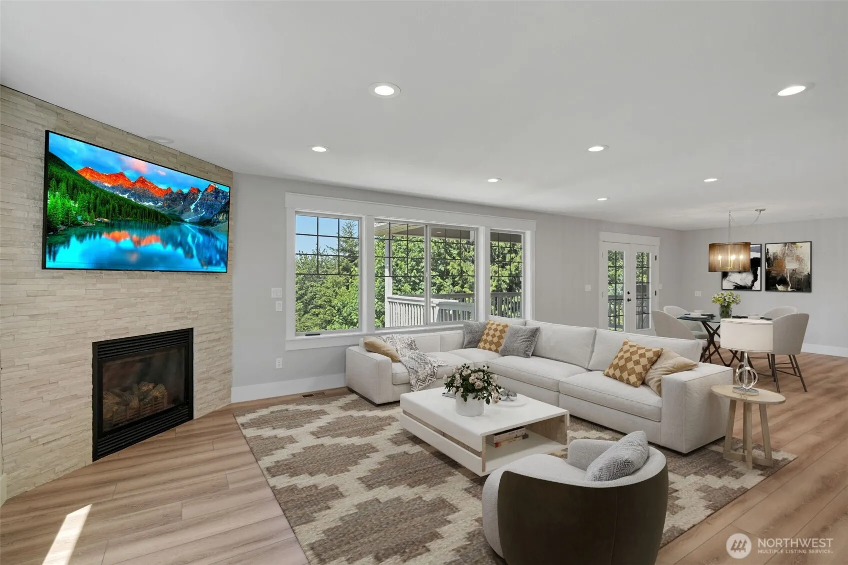 Experience exceptional privacy and peaceful country living just minutes from conveniences. Located approximately 10 minutes from the West Olympia area, this home is set within a secured gated neighborhood and positioned well beyond the entry for added seclusion. The community features a small enclave of estate-style properties and offers a tranquil setting surrounded by nature, limited traffic, and frequent wildlife sightings. The home features a fully remodeled upper level designed for primarily one-level living, filled with natural light and enhanced by a spacious covered deck ideal for relaxing or entertaining while enjoying territorial views and fresh country air. The lower level boasts an expansive, oversized garage with substantial capacity for multiple vehicles, recreational equipment, or workshop space, along with abundant storage and added flexibility. A stair lift provides convenient access between levels and can assist with transporting items. Additional highlights include high-speed cable internet and a setting that blends privacy, comfort, and functionality in a serene, natural environment.