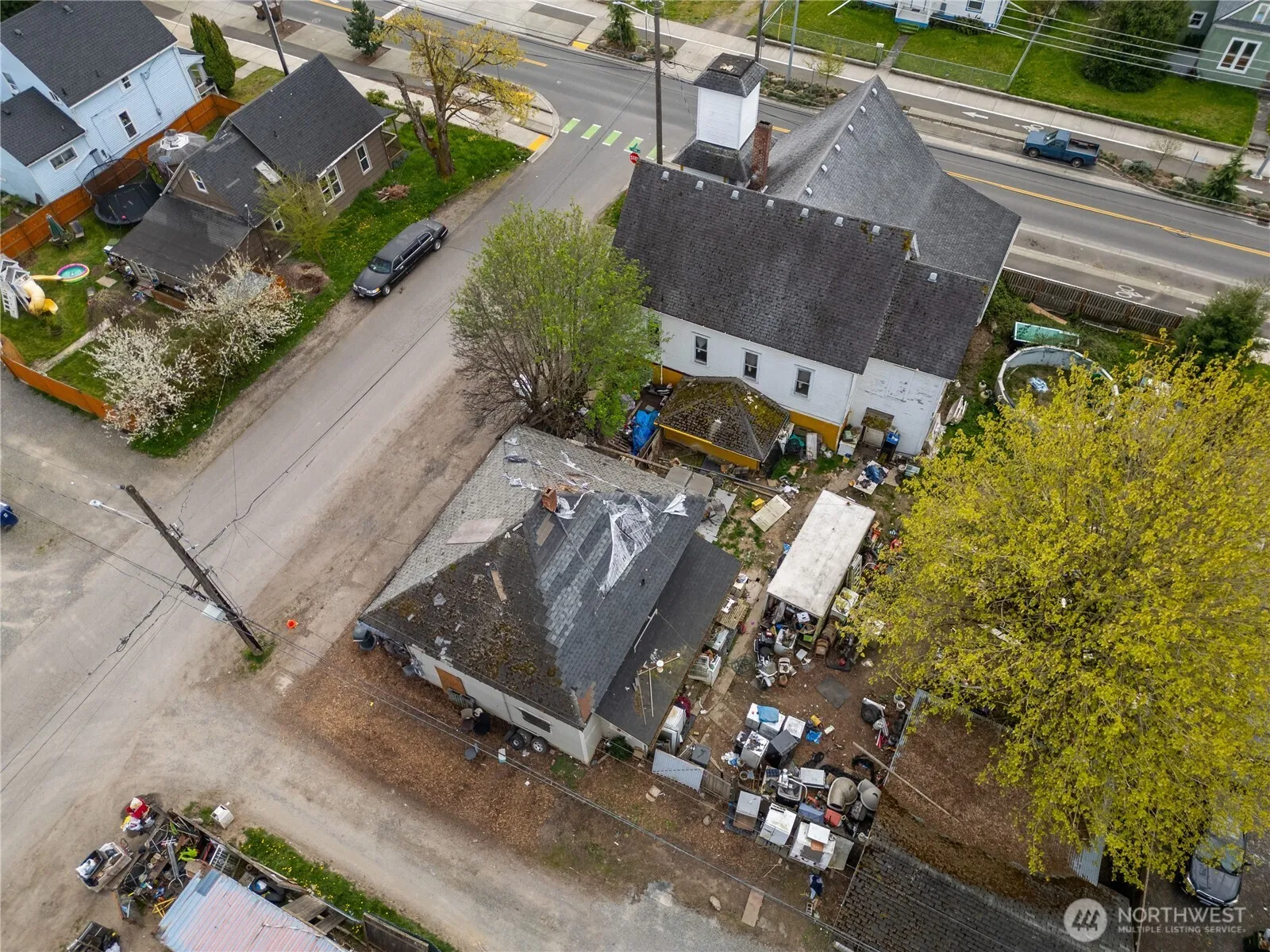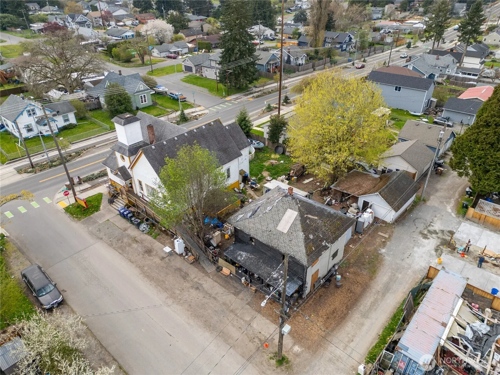 Corner lot opportunity in Tacoma on approximately 12,000 sq ft. Property features a church building in overall decent condition, a detached garage in good shape, and a detached residence that sustained fire damage. Strong value-add or redevelopment potential for investors or owner-users. Convenient location with easy access to major roads, services, and amenities. Buyer to verify all information to their satisfaction.