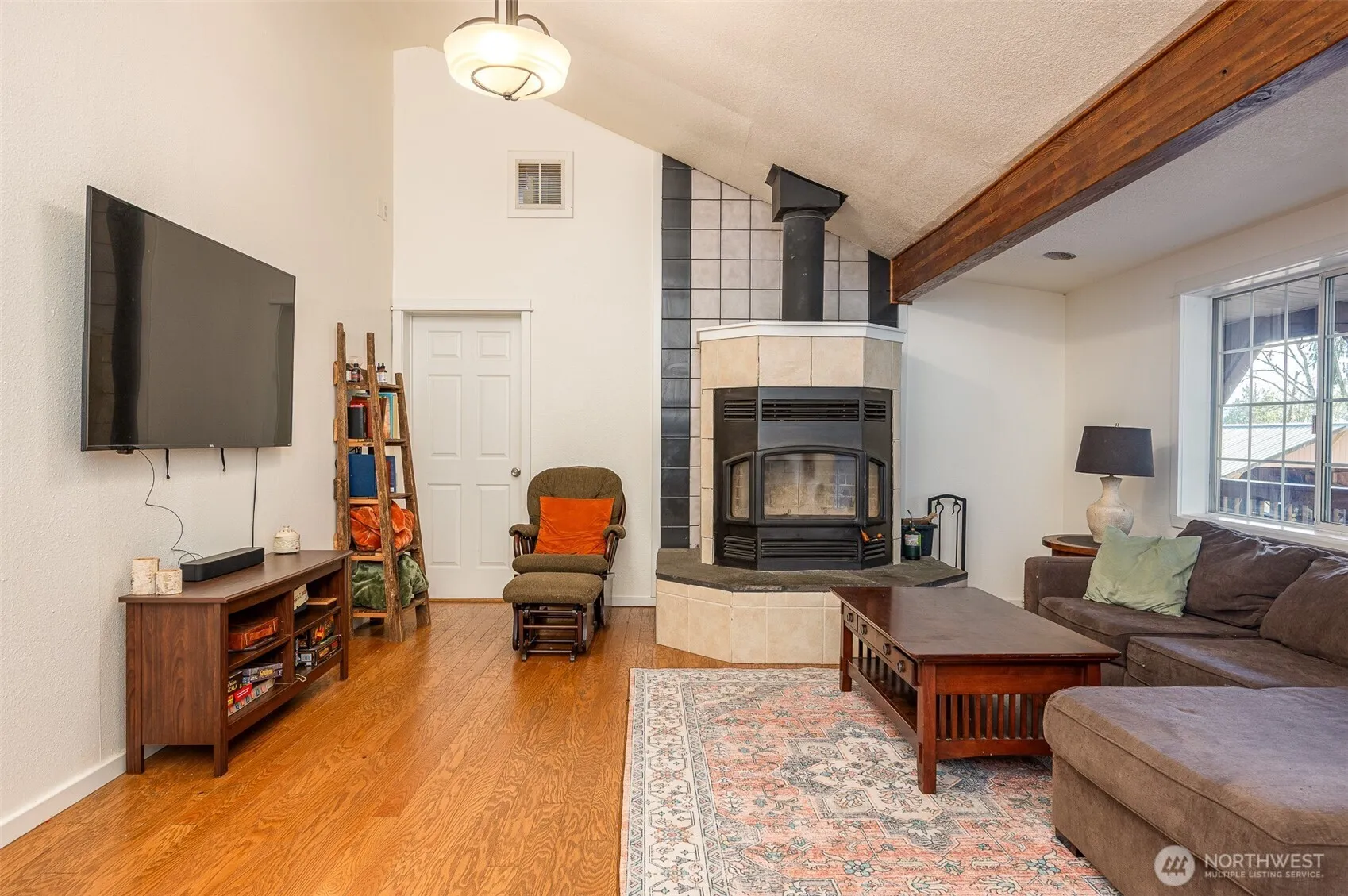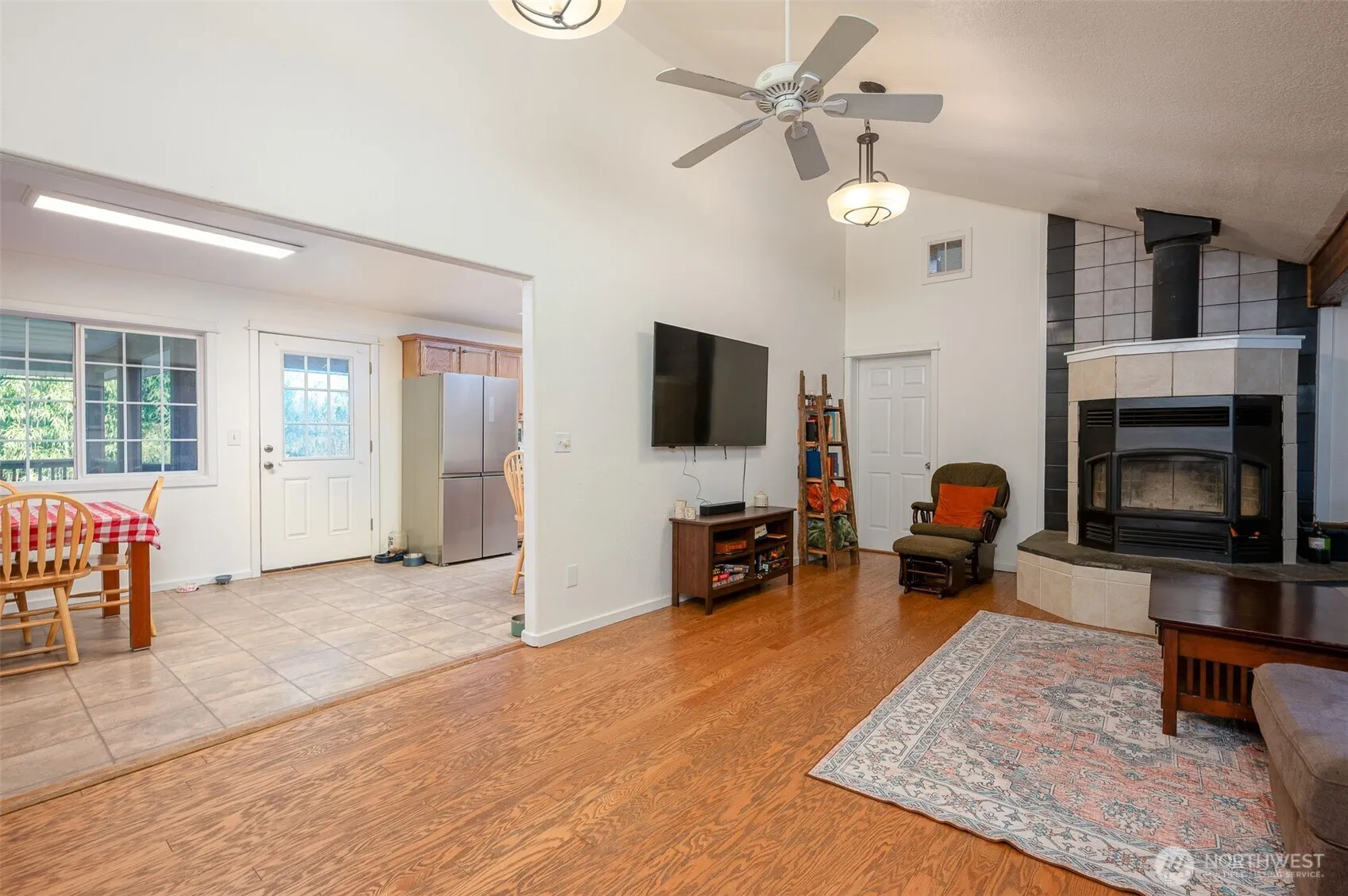 Escape to this serene, private retreat offering the perfect blend of rustic charm and modern comfort. Nestled among trees with stunning views, it remains just a short drive from I-5. Enjoy luxurious amenities including a hot tub, sauna with a dedicated bathroom, and a cozy woodstove, all enhanced by a wraparound deck ideal for relaxing or entertaining. The convenient main level primary suite features a walk-in closet, while the expansive pantry and flexible interior provide ample room for a home office. Home includes 2 on demand propane water heaters, newer fridge, oven, and dishwasher, W/D stays for the right offer. Outside, discover a huge barn with stalls and a hay loft, a chicken coop, space for a shooting range, and a large driveway with new gravel and room for RVs and trailers. With peaceful country living and convenient highway access, this home is a rare find for those seeking space, privacy, and possibility.
