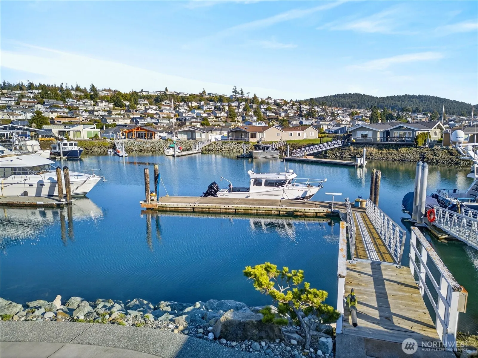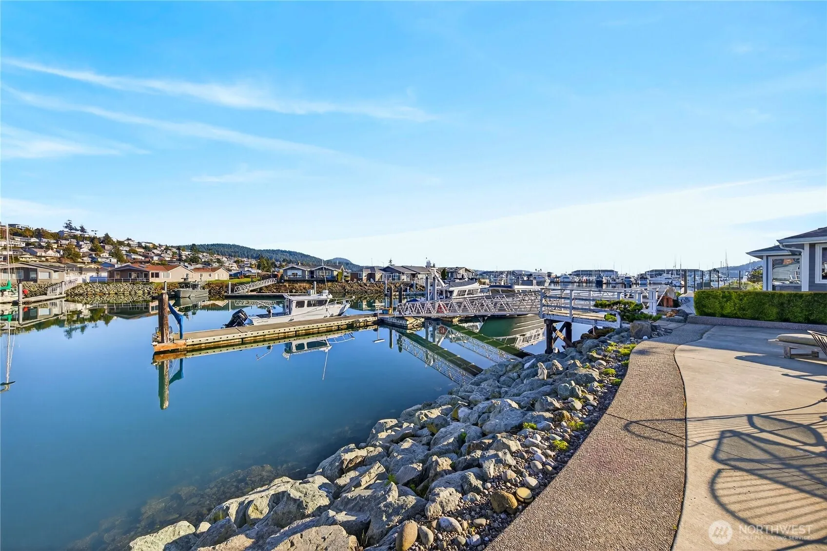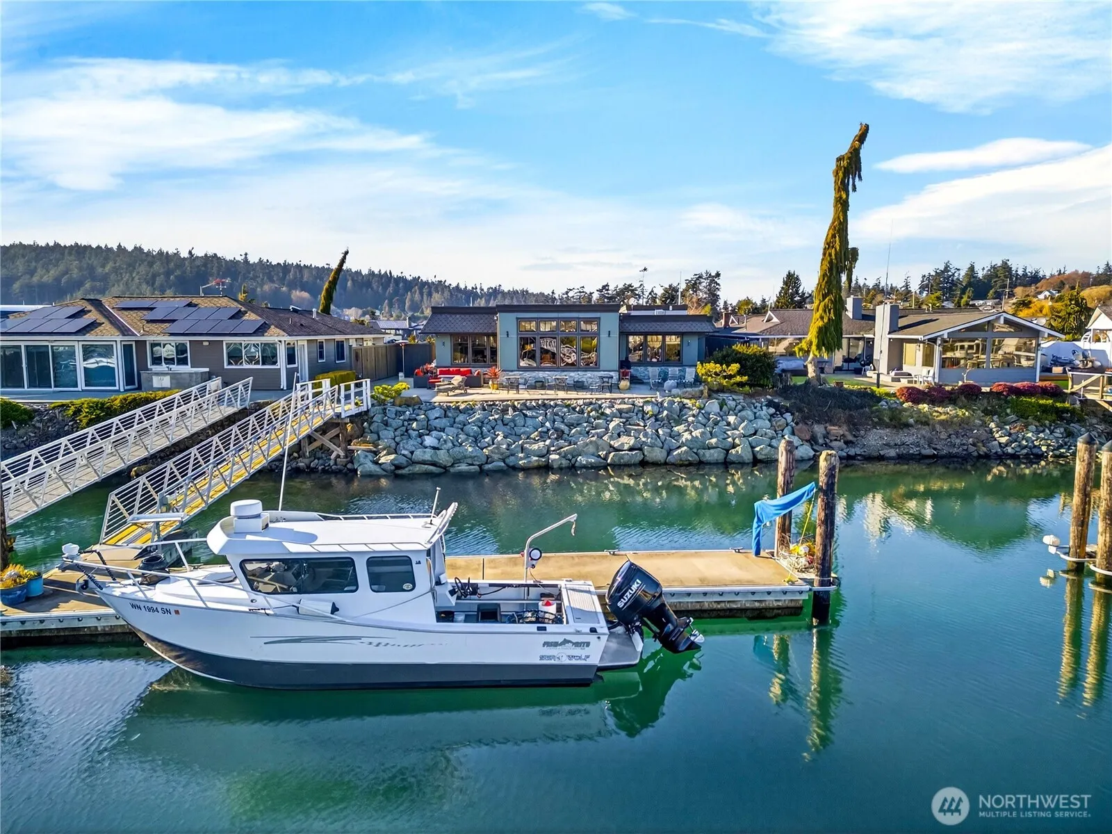 Experience premier waterfront living in the heart of Skyline with this beautiful single-level home offering private moorage and exceptional craftsmanship. With approximately 70+/- feet of low-bank saltwater frontage and a 50+/- foot double-sided private dock, there’s room for your yacht, fishing vessel, and all your waterfront adventures. Designed with an open-concept layout, the home lives effortlessly, blending expansive living spaces with sweeping marina views. Two luxurious primary suites provide flexibility and comfort—one featuring a spa-inspired bath with a steam shower and jetted tub for a true retreat experience. Copper-clad wood windows frame the water views, while copper gutters and downspouts add distinctive architectural detail and long-lasting quality. A generous craft room with custom built-ins offers creative space rarely found in waterfront properties, and a thoughtfully designed office with built-in cabinetry captures beautiful marina views—ideal for working from home without missing a moment of the scenery. Car enthusiasts and travelers will appreciate the attached 2-car garage plus an additional bay sized for a 45+/- motorhome or boat, along with exterior RV parking. All of this is located just about 70 minutes from Seattle. This is Pacific Northwest boating lifestyle at its finest—private dock, protected moorage, and refined one-level living in one extraordinary package!