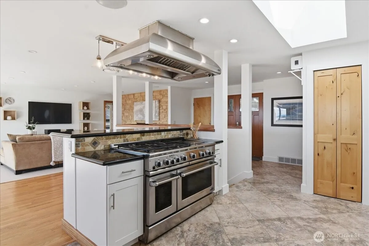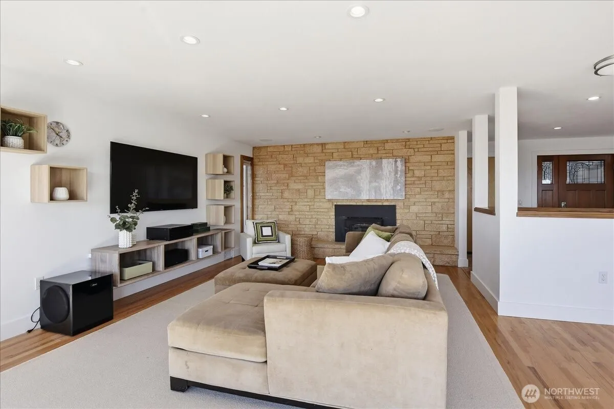 Stunning Sound View home in Edmonds Bowl. Remodeled & updated throughout, new TPO roof 2025, fresh paint in/out. Full view 18′ nana wall (imported from Germany) in living room, hardwood floors in living, dining & underneath carpet in main floor bedrooms. All electrical (replaced with 12 gauge), all new plumbing, furnace, lighting, fixtures, sound system, 2″x 6″ walls, new siding & trim, insulated foundation, entry gates, driveway, windows, along with custom finished African mahogany interior trim. There is a list in the house with more info.