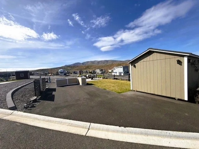 Pull-through RV lot with full hookups and mountain views at Naches RV Resort, approx. 20 miles west of Yakima. Lot #45 is an oversized 4,356 sq ft site on a scenic bluff, designed to accommodate a motorhome, 5th wheel, travel trailer, or park model. This desirable lot features full hookups, including a frost-free spigot for year-round use, and is ideally located near resort amenities. Improvements include full asphalt surfacing, irrigation and lawn, paver patio, fencing, enhanced landscaping, and a 10×12 storage shed. A well-appointed outdoor kitchen is also included, perfect for entertaining and enjoying the setting. Located in a recreation-rich area with nearby ATV and snowmobile trails, fishing, hunting, hiking, golf, skiing, breweries, and farm stands, this property offers year-round enjoyment. Resort amenities include a clubhouse with kitchen, large-screen TVs, and indoor fireplace, plus a saltwater pool, hot tub, fitness center, pickleball courts, laundry, showers, playground, dog park, and walking trails. HOA dues of $190/month cover water, sewer, garbage, landscaping, and amenities; electricity is owner-paid. Optional onsite rental program available. Ideal for personal use or investment, this property combines upgrades, scenery, and resort convenience.