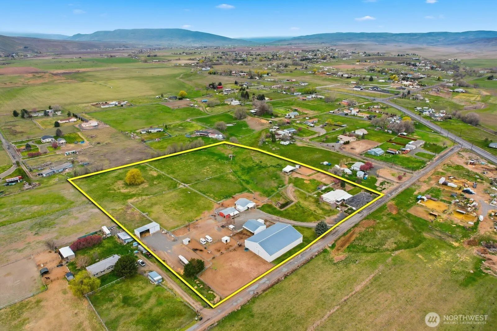 Turnkey equestrian and hobby farm with income potential, set on 9.79 acres in Selah and currently boarding 8 horses with capacity for up to 17. This well-equipped property is designed for both functionality and lifestyle, featuring a 7,000 SF indoor riding arena, barn with 5 stalls and tack room, hay storage, implement shed, and cross-fenced pastures ready for horses or livestock. Irrigation rights support the acreage along with an established underground sprinkler system, making pasture management efficient and practical. Whether you’re operating a boarding setup, training facility, or simply enjoying country living, this property offers flexibility and opportunity. The home has been meticulously maintained and reflects true pride of ownership, offering a spacious layout, original finishes in excellent condition, a propane fireplace, and a primary suite with heated bathroom flooring. Clean, comfortable, and move-in ready with room to update to your personal style over time. Additional features include RV parking, garden space, mature landscaping, and multiple outbuildings to support a variety of uses. Located with easy access to Wenas recreation, this is a rare opportunity to own a fully functional equestrian property with income potential.
