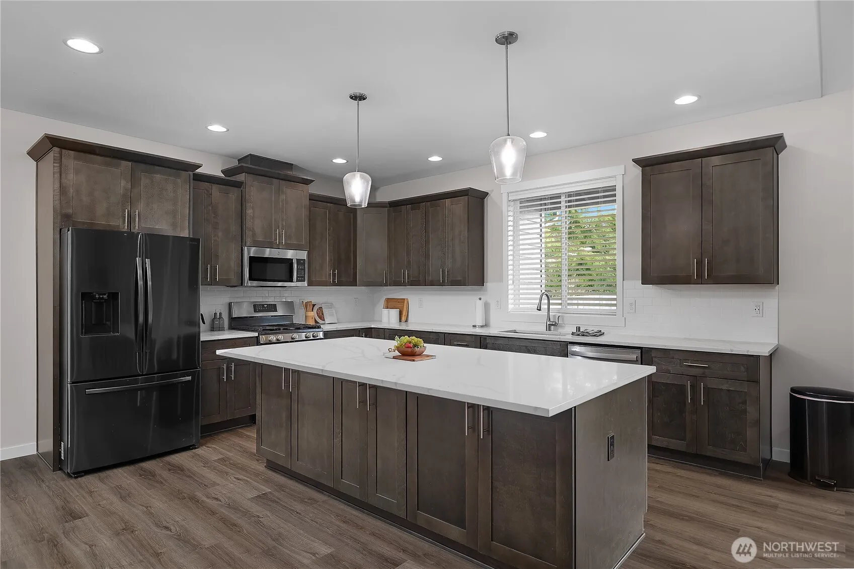 Priced less than new!! 2023 built Nisqually plan rambler in Trotter Downs! 9ft ceilings and vaulted living room! Open concept floorplan with great single-story layout! Kitchen has stainless appliances and a double door pantry. Quartz topped cabinets & huge kitchen island with dual sided storage below. Open dining space and living room with a gas fireplace centerpiece. 2 guest bedrooms on one side of the home with the office and primary on the opposing side. Large primary bedroom with ensuite walk-in closet and beautiful full bath, standalone tub, double sinks, step in shower. Designated laundry room. Tankless gas water heater. Enjoy air conditioning this Summer! 2 car garage with plenty of room for storage and a pull thru roundabout driveway. Fresh exterior paint done in May 2025. Private, fenced back yard, covered back patio and massive side yard.