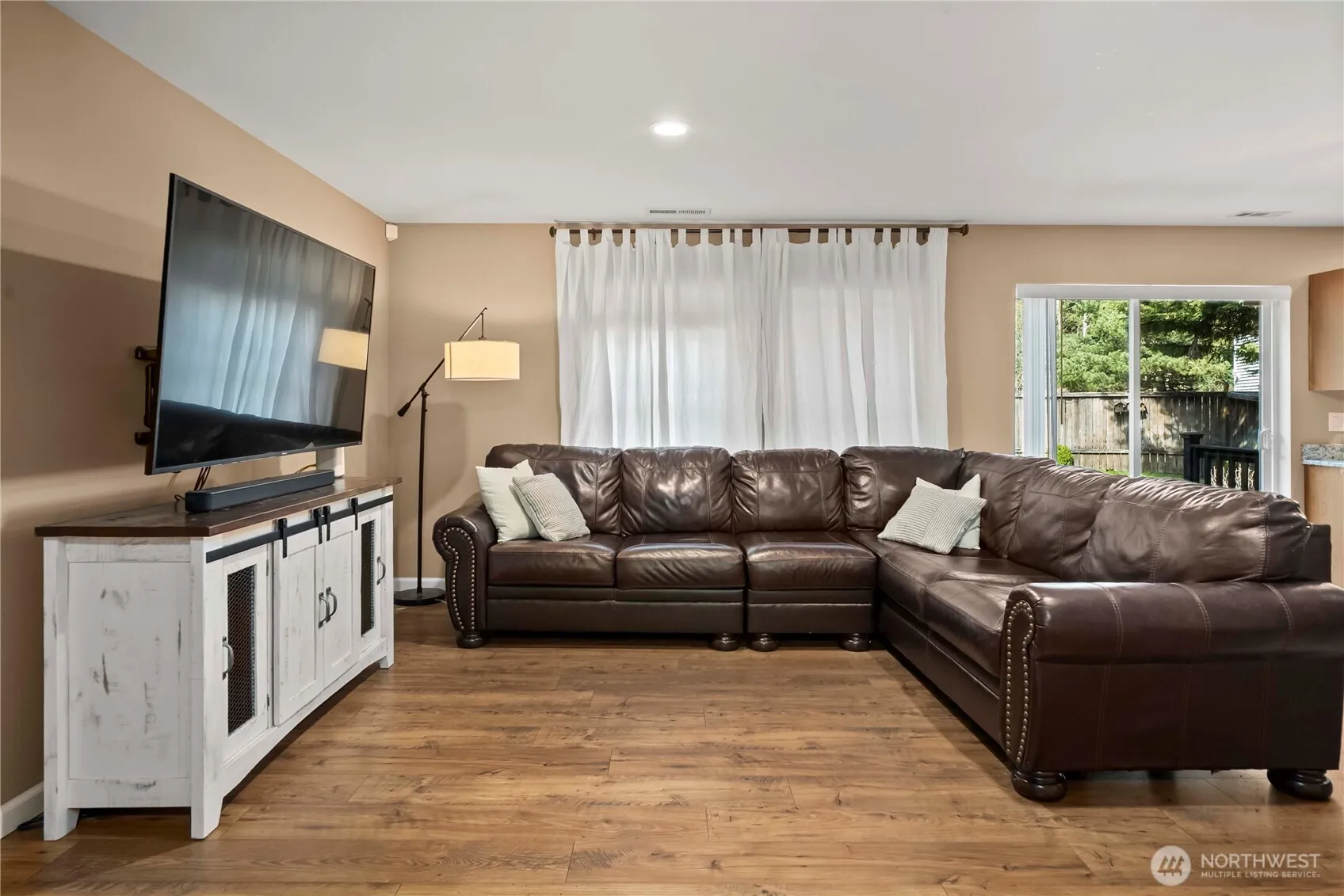 Welcome home to this beautiful residence in one of Bonney Lake’s most conveniently located neighborhoods. Perfectly positioned for both convenience & comfort, this home offers an ideal central location, just a few minutes from the freeway for easy commuting, with top-rated schools & everyday shopping only a short walk or drive away. Step inside to a bright, light-filled open-concept living space where the family room & kitchen naturally flow together. Large windows frame views of the generously sized backyard with sprinkler system, custom french drain & entertainment deck, which backs directly to a peaceful greenbelt; creating a private, nature-filled retreat right at home. The chef-friendly kitchen shines with sleek stainless steel appliances, elegant granite countertops, center island, and a clean layout designed for both everyday living & entertaining. The entire main level features beautiful wide-plank flooring that adds warmth and modern style. Upstairs, you’ll find oversized, generous bedrooms, each with spacious walk-in closets along with two full bathrooms! This thoughtful layout provides plenty of room for guests, or a home office. Home has it’s own separate low-voltage panel & is wired for a generator & has natural gas hookups, perfect for weathering PNW storms. Whether you’re looking for convenience, comfort, or that perfect blend of indoor and outdoor living, this Bonney Lake home checks every box. Don’t miss your opportunity to make it yours!